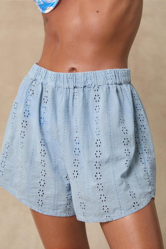 Crafted from breathable 100% cotton with a summery eyelet embroidered design, these swim cover-up shorts by O'Neill are the perfect addition to your beach-ready favorites. The high-rise fit features an elasticized waistband and an effortless, boxer-style silhouette paired best with lounging.