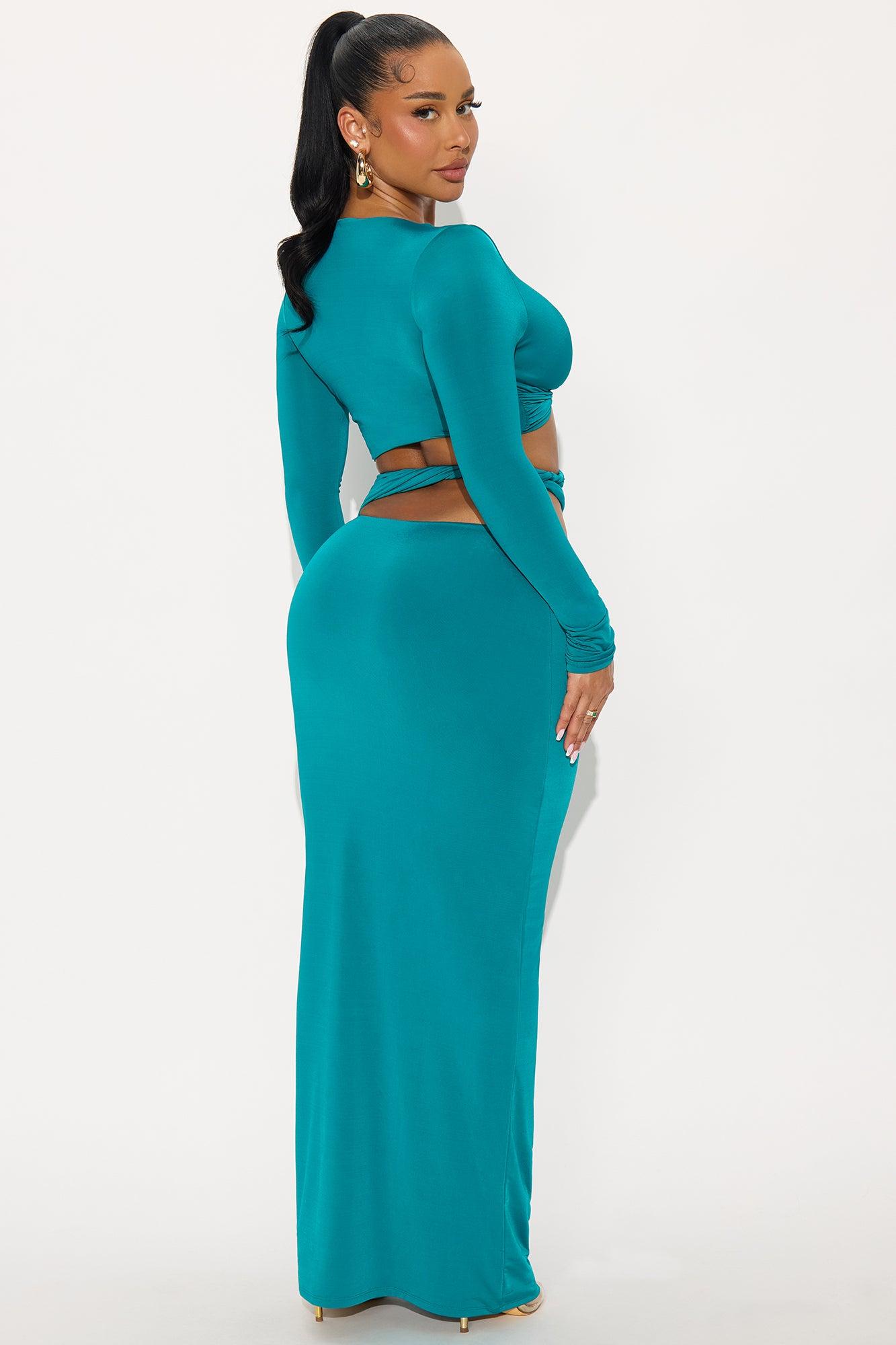 Pamela Cut Out Long Sleeve Maxi Dress - Teal Female
