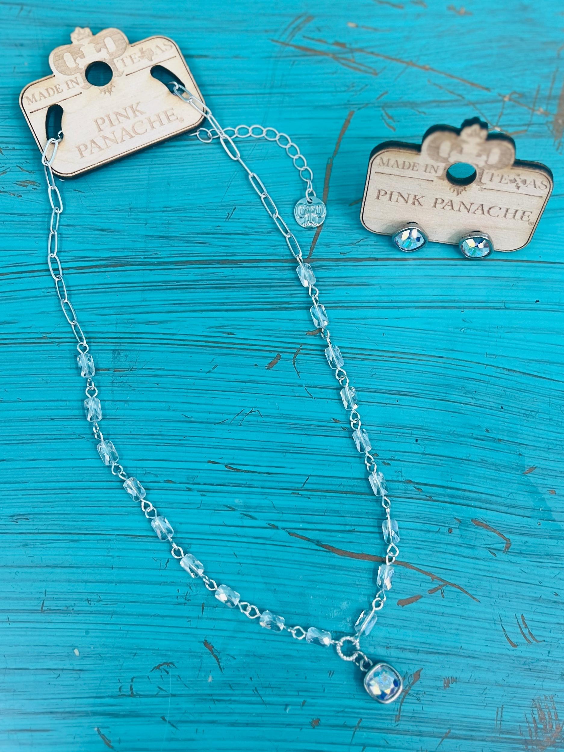 Make a statement with the Panache Vegas Lights Necklace. Featuring a trendy 16" paper clip chain, delicate silver accents, and sparkling clear beads, this necklace is perfect for any occasion. Plus, the 1/4" iridescent stone adds a touch of glamour. Easily adjust the length with the 3" lobster clasp extender. Shine on! **Matching Earrings Sold Separately**