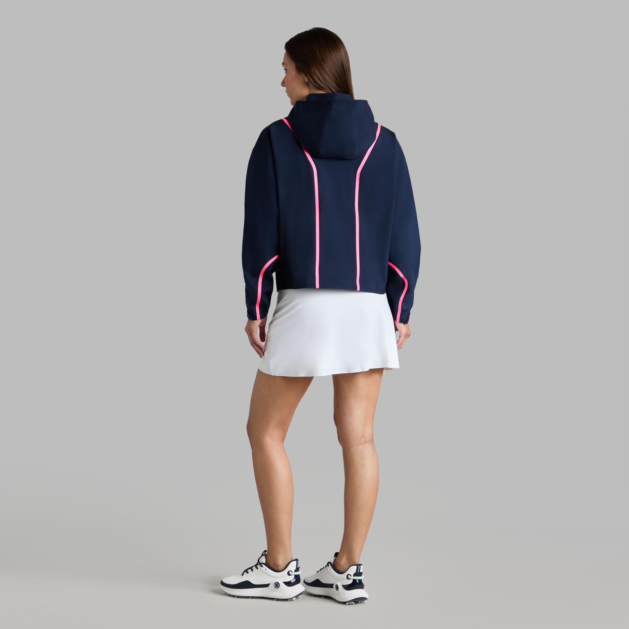 DON'T LET THE RAIN RAIN ON YOUR PARADE — OUR PANELED WATERPROOF HOODED JACKET IS THE PERFECT SOLUTION TO RAINY DAYS ON THE COURSE. FEATURING A STAND COLLAR AND A HOOD, THIS JACKET OFFERS SUPERIOR PROTECTION FROM THE ELEMENTS. THIS ONE IS A NO-BRAINER.