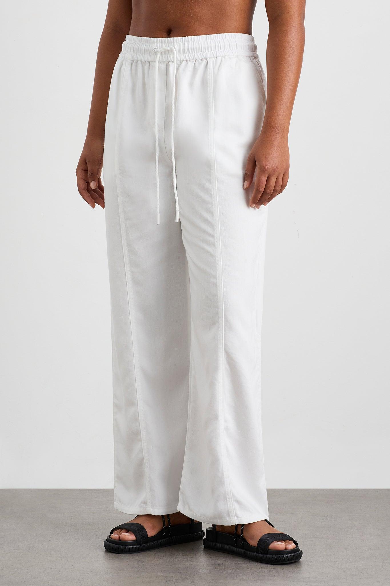 PRODUCT DETAILS Lyocell wide-leg pants Elasticated waist with adjustable drawcord Non-functional front fly Side and back pockets Stitched panels Back logo detail Compostable. Biodegradable. Ultra breathable. Our lyocell is made from renewable raw material wood that can fully revert to nature. SIZE AND FIT Ariarne wears a size 8/S and is 175cm/5'8 height Aroha wears a size 12/L and is 177cm/5'9 in height Sarah wears a size 16/XXL and is 181cm/6'0 in height FABRICATION 100% Lyocell