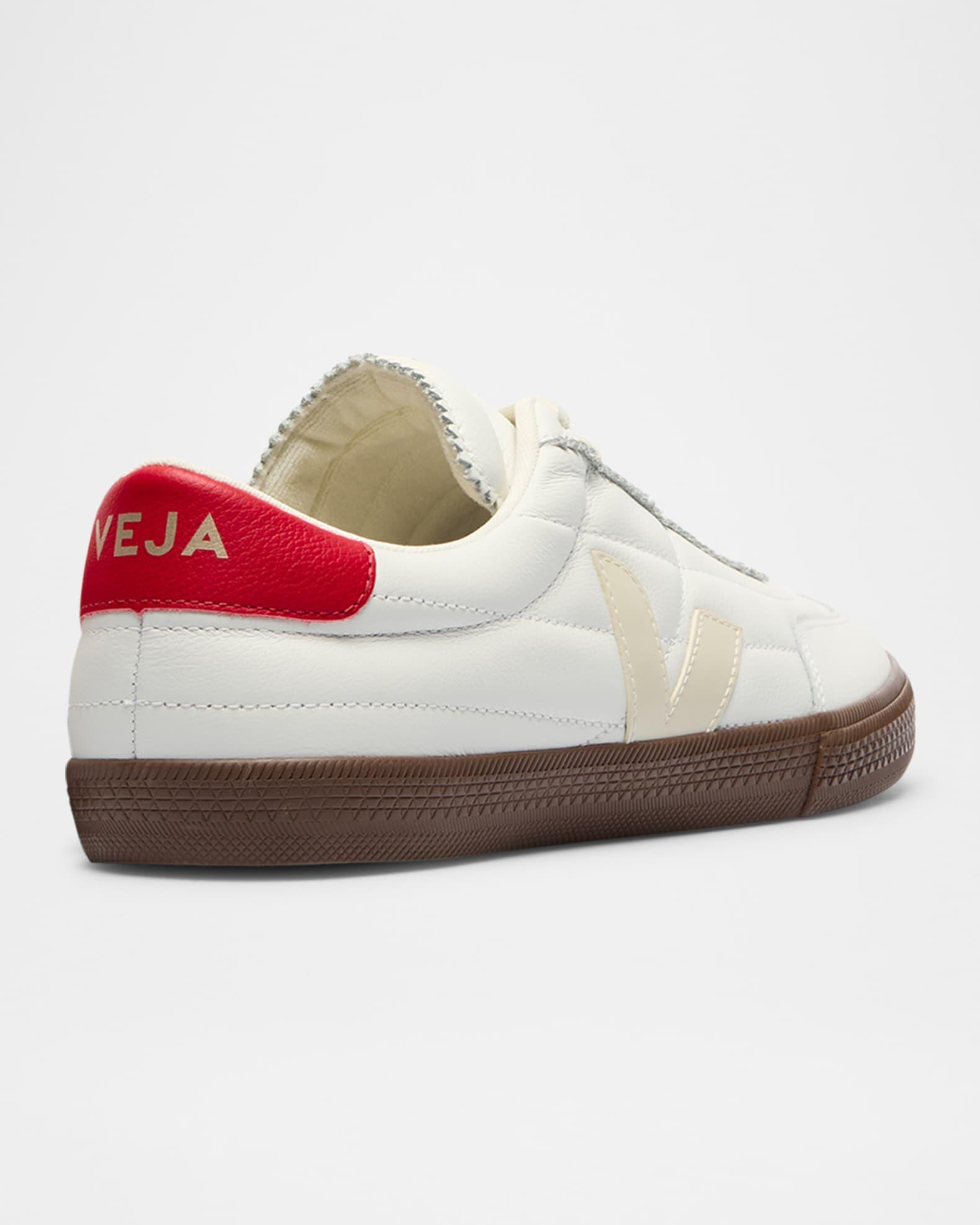 Veja "Panenka" leather low-top sneakers with a contrasting logo-printed backstay Signature V logo on sides Flat heel Round toe Lace-up vamp Lining: Recycled polyester Rubber outsole Made in Brazil