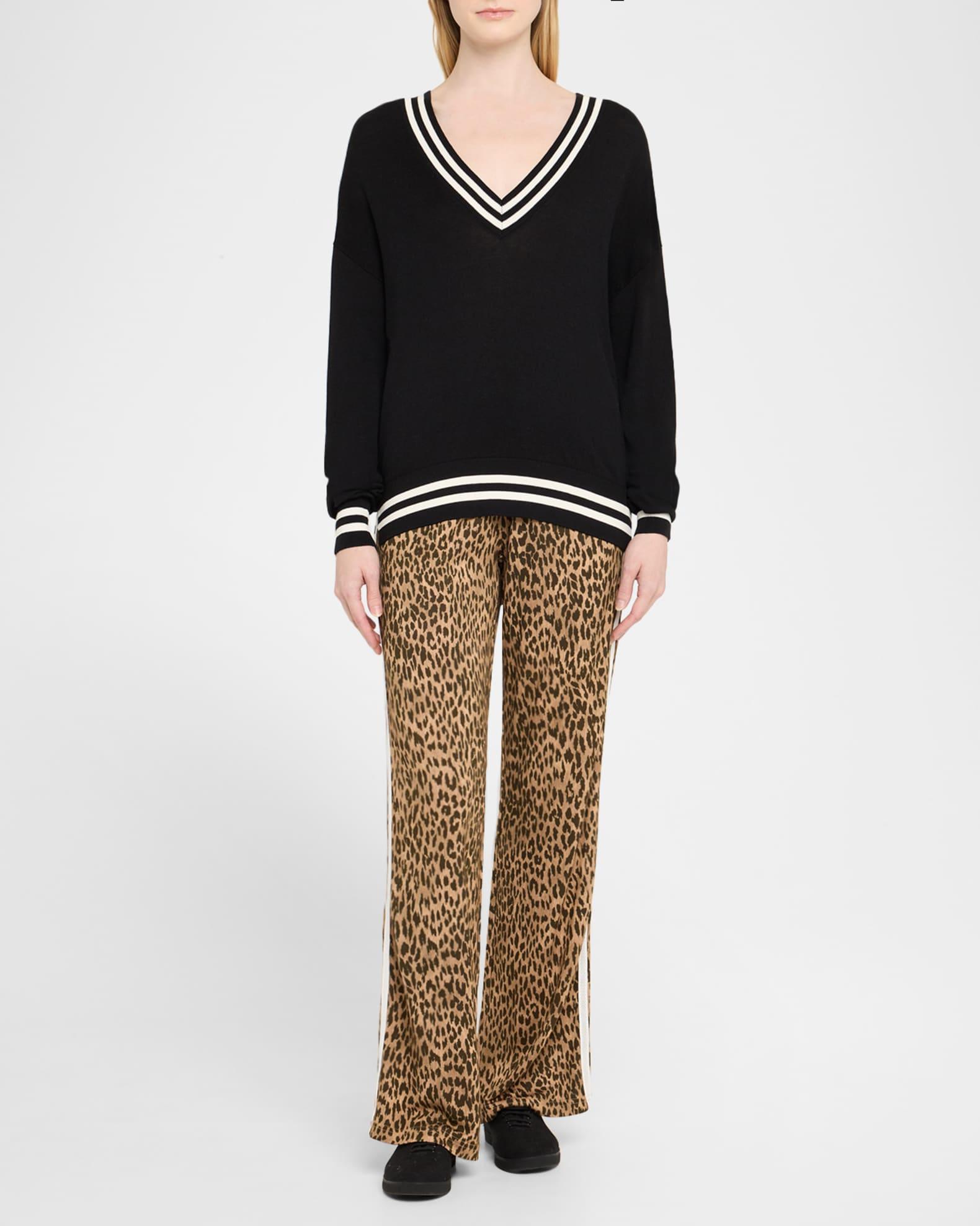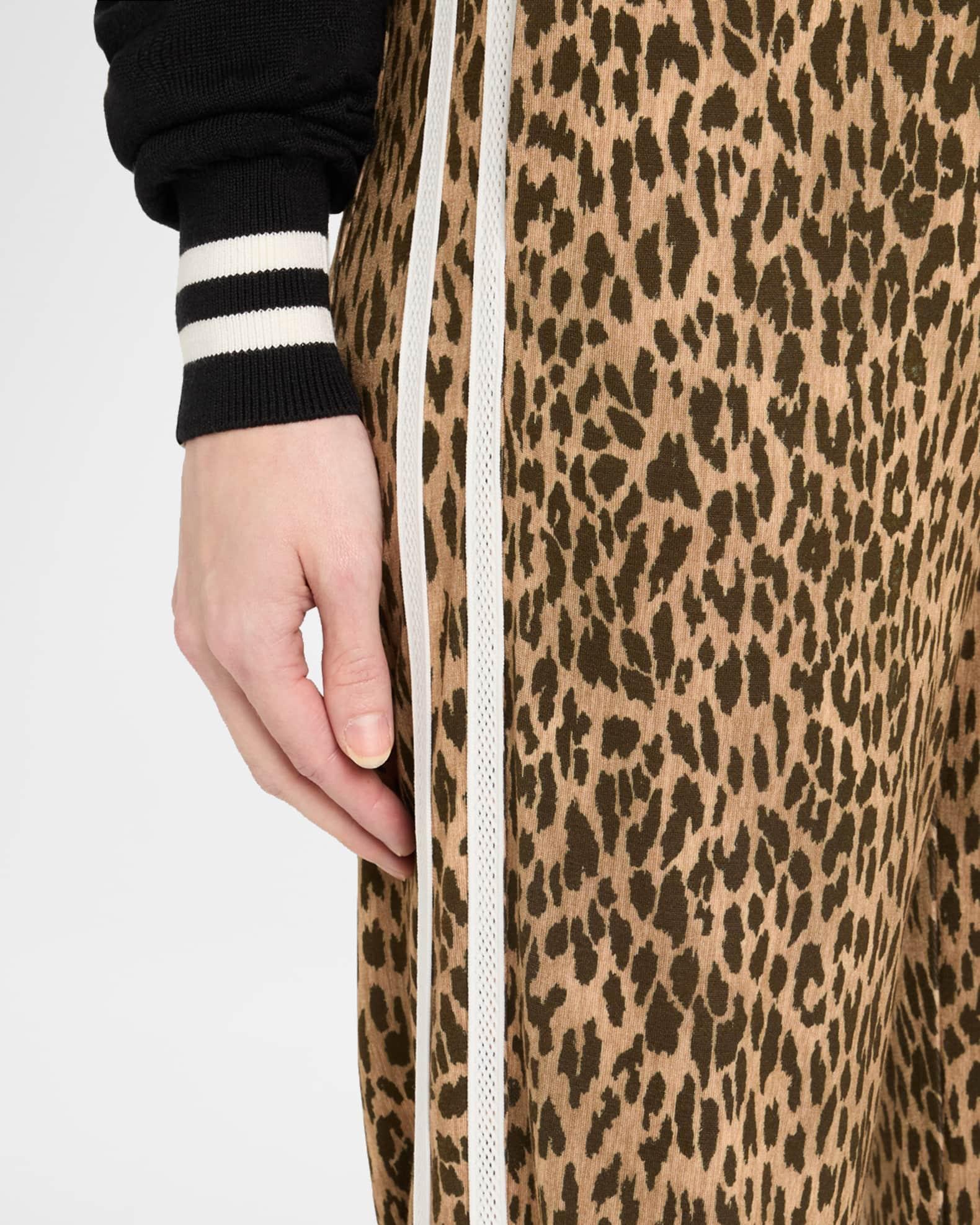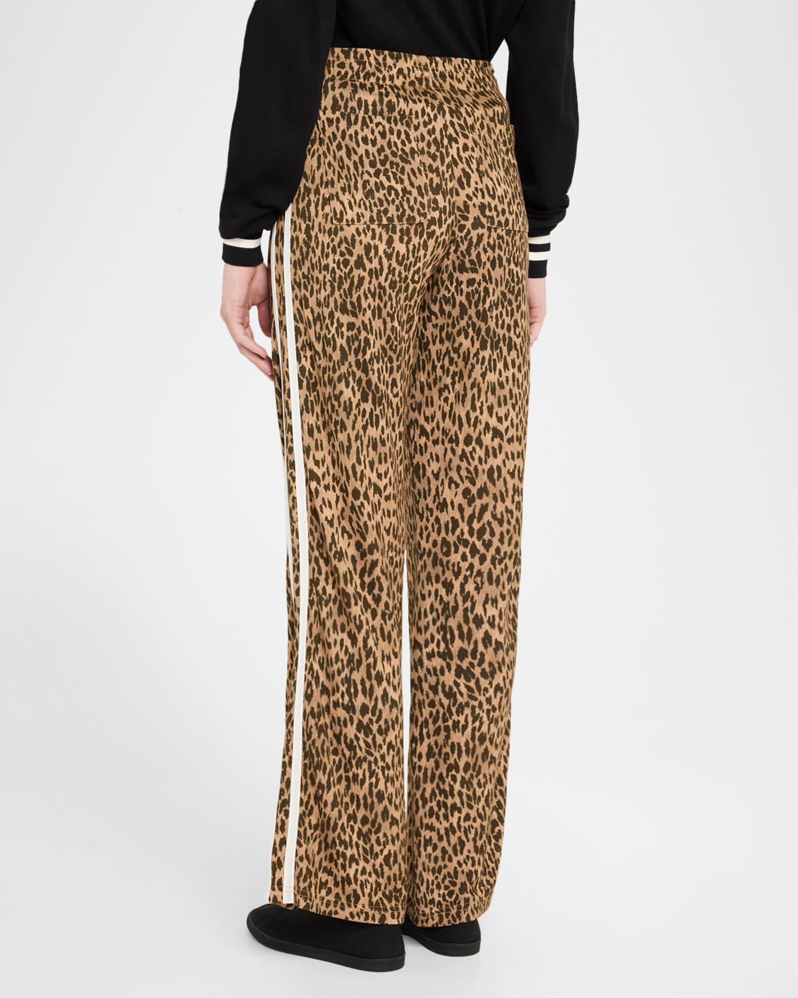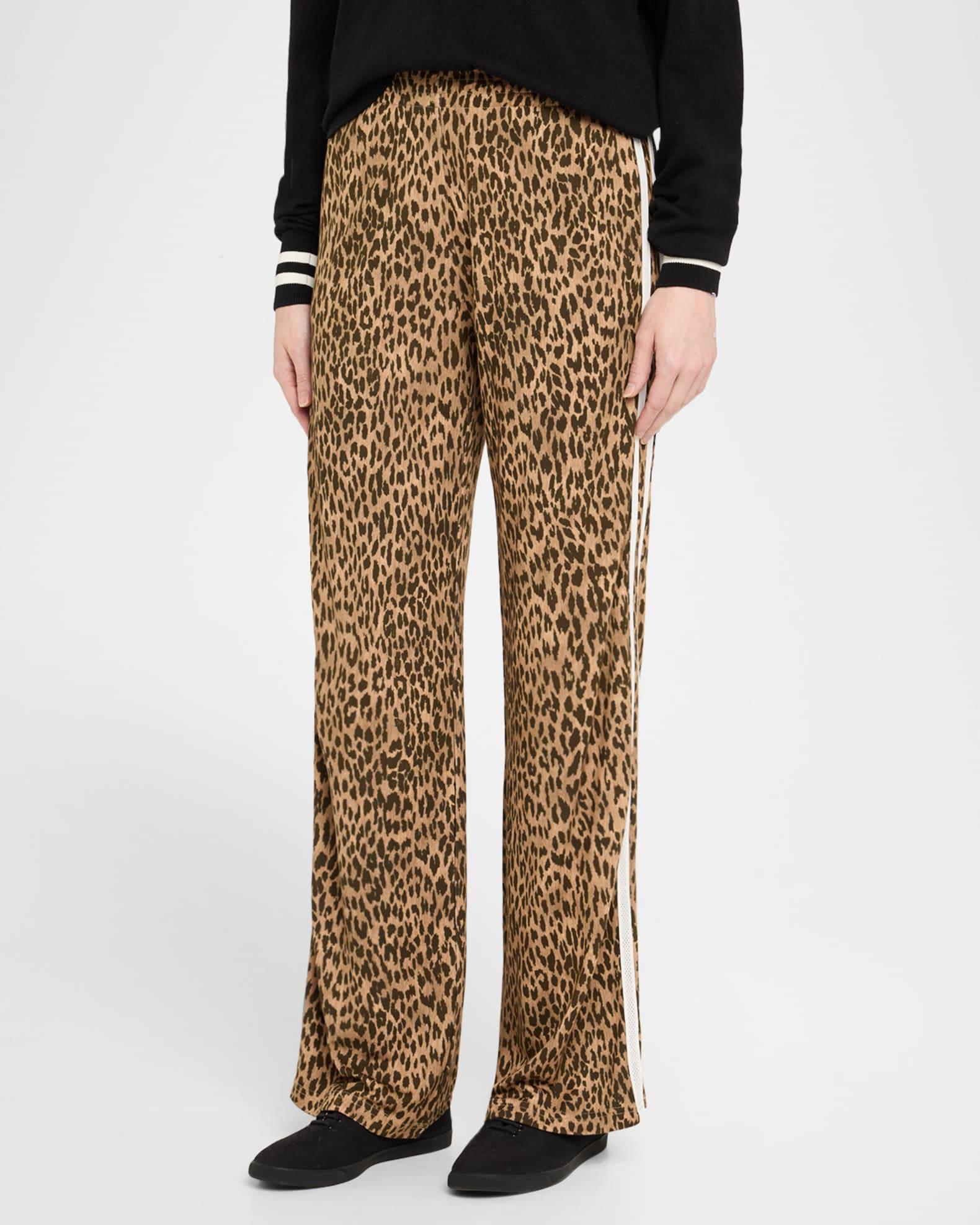 The Upside "Jetset" leopard-printed pants accented with contrasting side stripes Approx. 31" inseam; 47" outseam High-rise waistband Full length Relaxed legs Pull-on style Viscose/rayon/cellulose acetate/nylon/polyamide Machine wash cold, line dry Imported