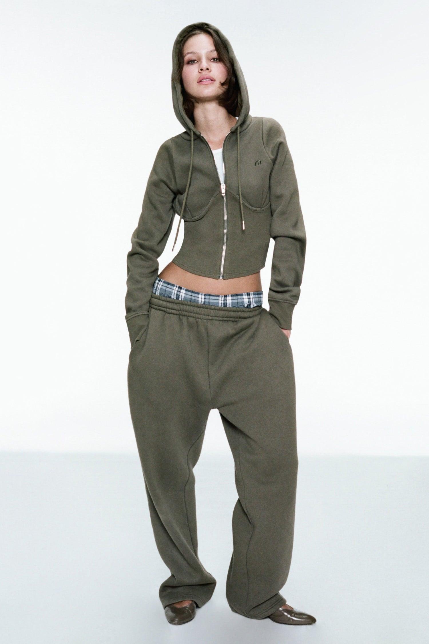 Our fan favorite fleece sweatpant returns in a rich olive palette. The internal drawcord can be tightened to snatch you up or left untied for a looser fit. Wear her to the airport with our Sadie Top.