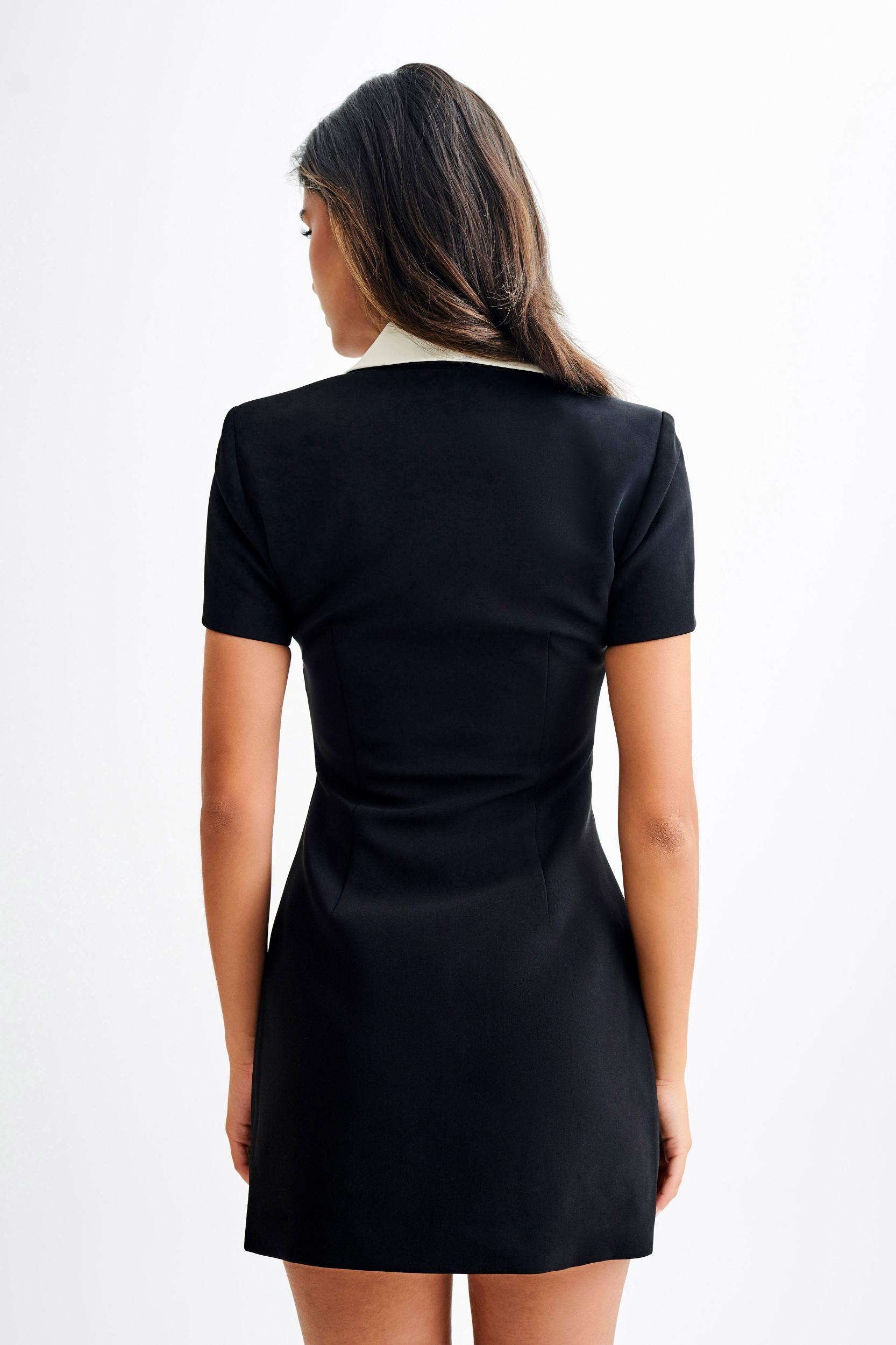 Suit-ableThe PAOLINA Collared Suiting Mini Dress is a chic and sophisticated addition to your wardrobe. Featuring a V neckline with a collar and lapel, it exudes timeless elegance with a hint of modern flair. The functional center front button closure adds a touch of polish, while the non-functional front pockets offer a stylish detail. With short sleeves, it's perfect for warm-weather wear, and the mini length adds a flirty touch to the ensemble. Whether dressed up with heels for a formal occasion or styled casually with flats for a daytime look, the Paolina Mini Dress is sure to make a statement with its effortless charm and versatile style.