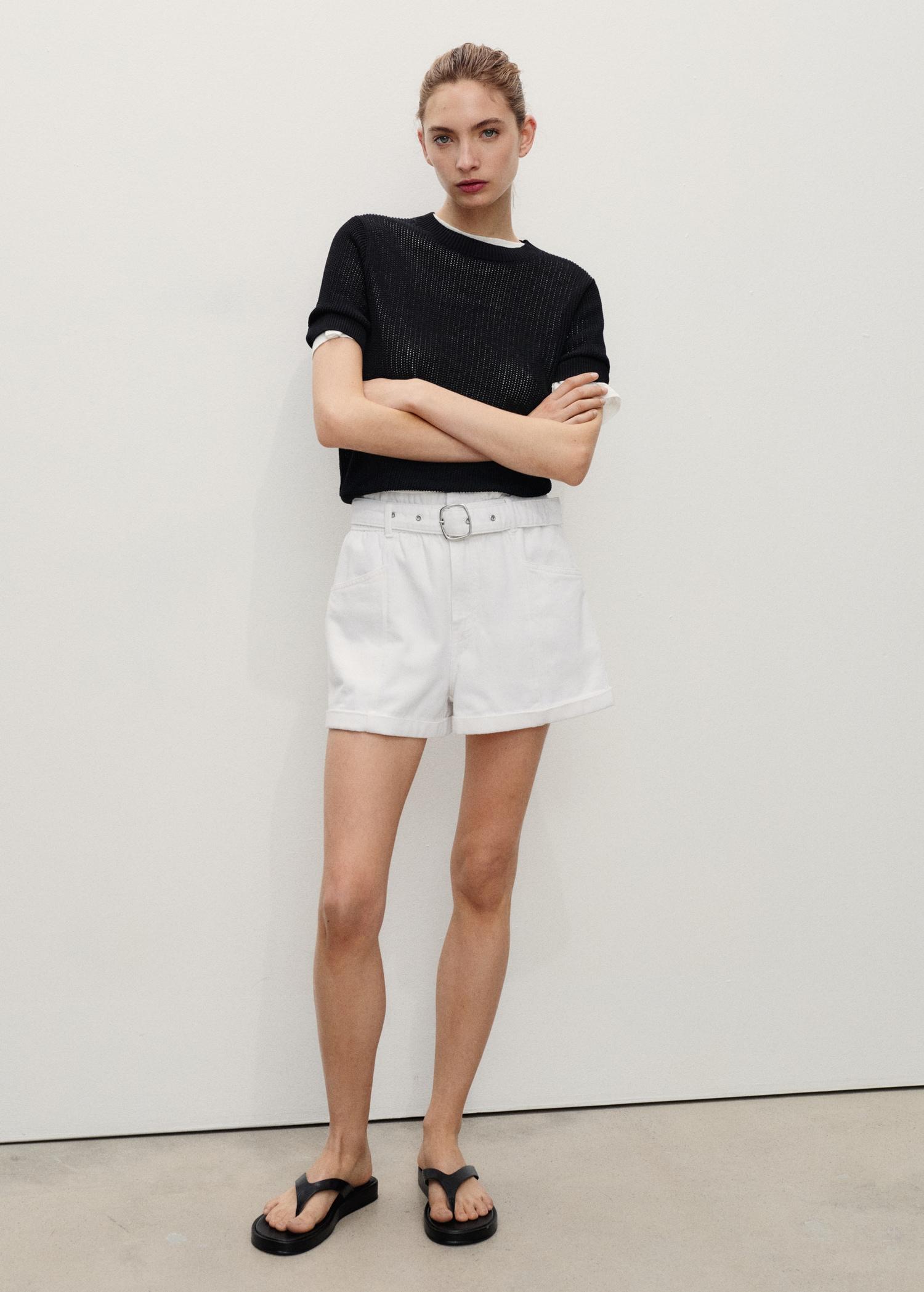 Paperbag shorts with rolled hem and belt - Women | MANGO USA