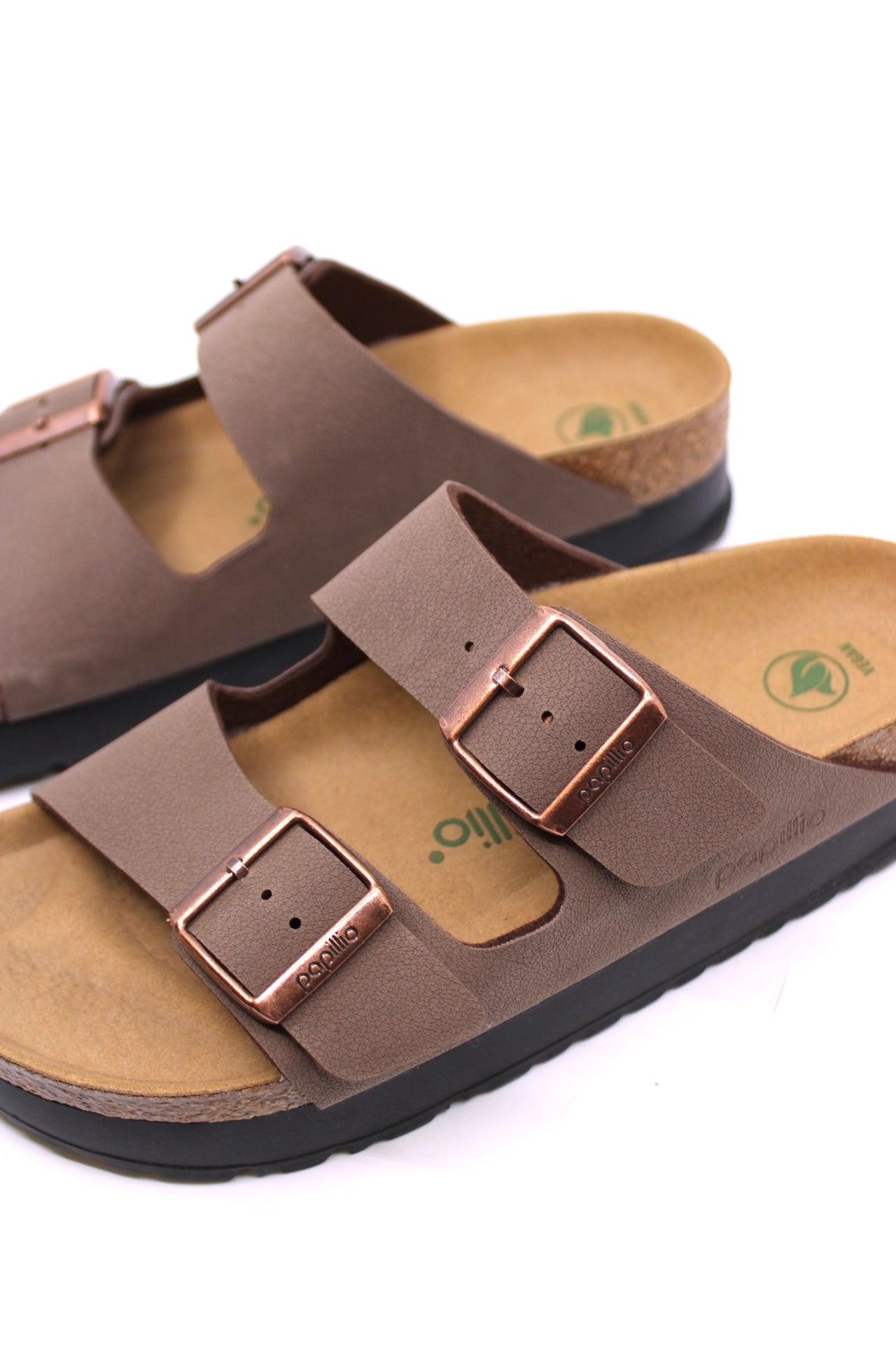 Get ready to elevate your style game with Papillio by Birkenstock Arizona Platform Vegan. This classic Arizona sandal is given a trendy twist with a lightweight EVA grooved platform midsole. Made with Birkibuc and vegan materials, it's stylish and cruelty-free. Step up your fashion game in comfort and conscious style.