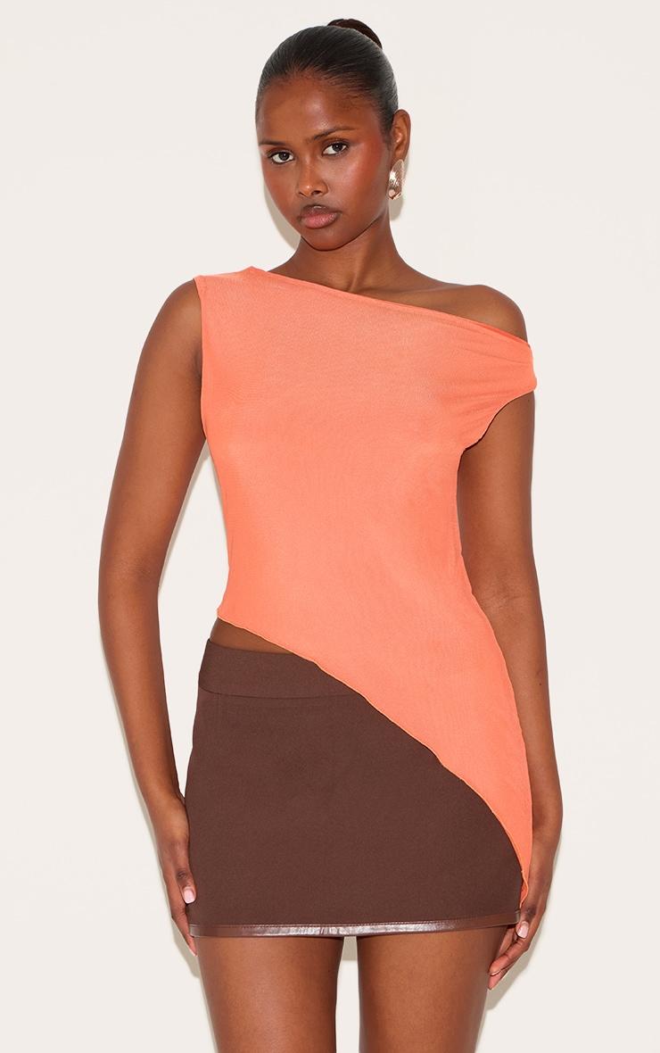 The paprika asymmetric neck mesh top is an easy essential, crafted with soft-touch fabric and a relaxed silhouette that elevates laid-back styling. A statement piece that transitions seamlessly from day to evening. Team this mesh top with a pair of heels and a mini skirt to finish off the look we are loving right now.Length approx 48.5cm/19inch (Based on sample size US 4)Model wears size UK 8/ EU 36/ AUS 8/ US 4Model Height - 5ft 9inchp]:!mb-4inch>Brand: PrettyLittleThingCategory: TopsProduct type: Fitted T-ShirtColor: PaprikaMaterial: Slinky JerseyDesign: PlainNeckline: AsymmetricSleeves: SleevelessOccasion: Day