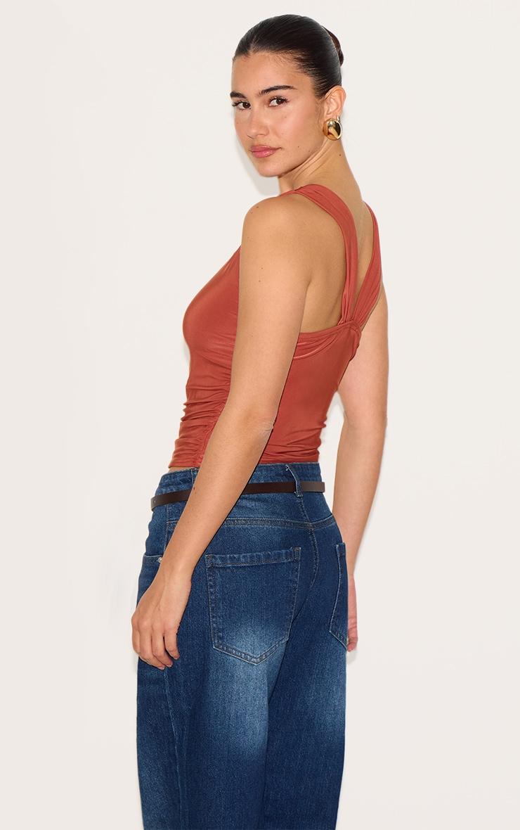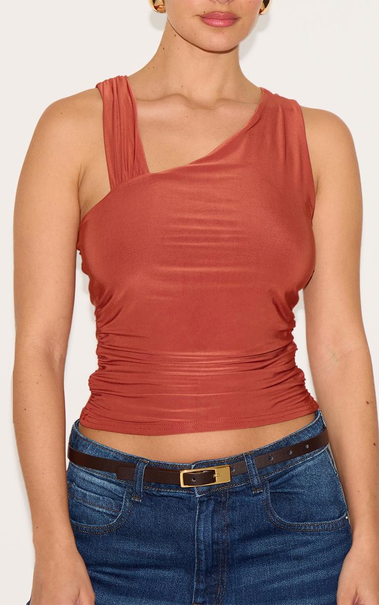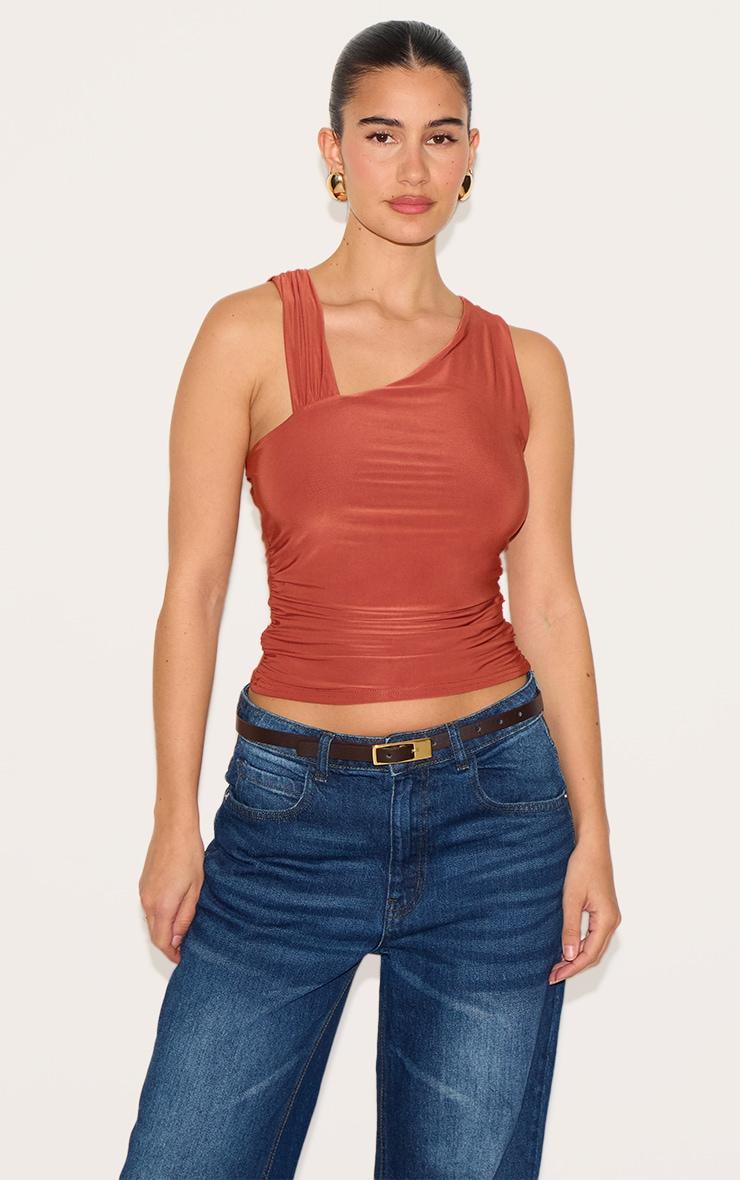 Brought to you in a paprika material with an asymmetric design and a strap detail. Team this paprika asymmetric strap detail vest top with a pair of jeans and gold earrings to take your look to new heights.Length approx 48.5cm/19inch (Based on sample size US 4)Model wears size UK 8/ EU 36/ AUS 8/ US 4Model Height - 5ft 7inchp]:!mb-4inch>Brand: PrettyLittleThingCategory: TopsProduct type: Cami TopColor: PaprikaMaterial: Slinky JerseyNeckline: V NeckSleeves: SleevelessOccasion: Evening