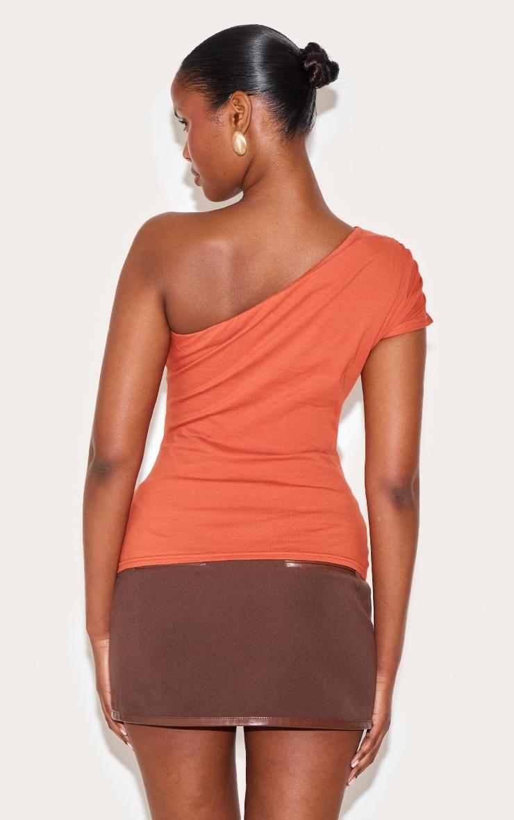 Crafted from paprika hue material with asymmetrical one shoulder detailing and a hip length fit. Elevate your wardrobe basics with this paprika one shoulder asymmetric top, perfect for styling with a complimentary mini skirt, bold earrings and understated slip on heels.Length approx 48.5cm/19inch (Based on sample size US 4)Model wears size UK 8/ EU 36/ AUS 8/ US 4Model Height - 5ft 9inchp]:!mb-4inch>Brand: PrettyLittleThingCategory: TopsProduct type: ShirtColor: PaprikaMaterial: Cotton JerseyNeckline: One ShoulderSleeves: ShortOccasion: Evening