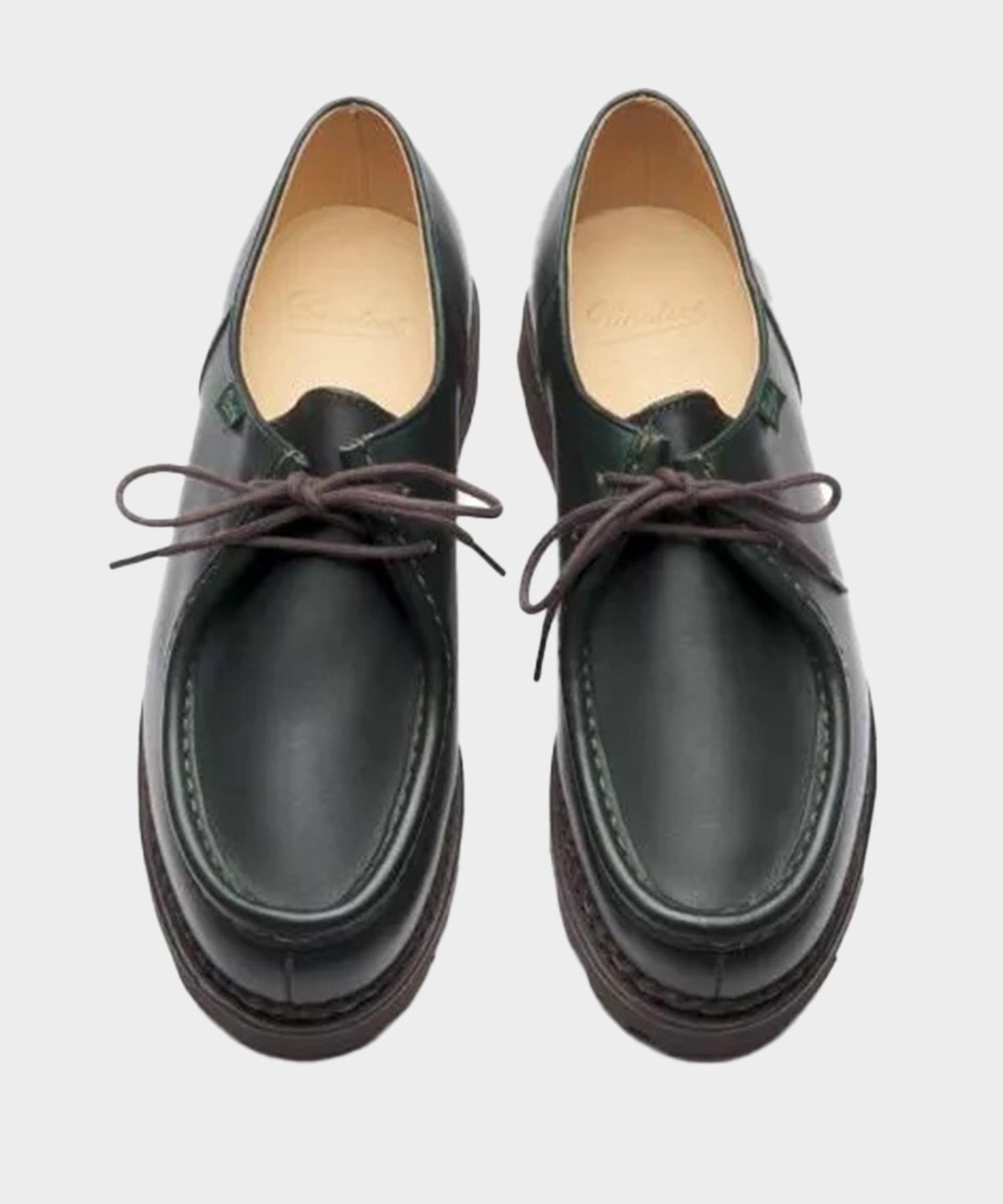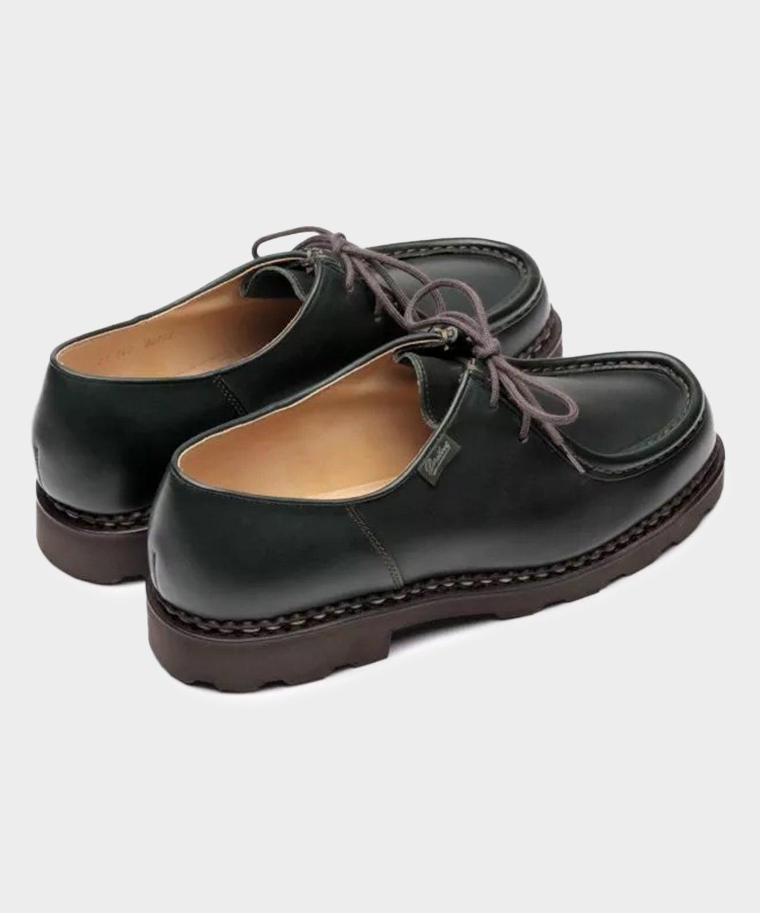 *Please note that we are only able to ship Paraboot within The United States, Canada and Mexico* Taking over 100 years of industry experience and turning it into a masterclass in artisanal perseverance and fine French craftsmanship, Paraboot is celebrated for its structural silhouettes, authentic detailing and anticonformist attitude. Created by the second generation of the Richard-Pontvert family, this iconic model was marked by the birth of Michael Richard in 1945. Renowned all over the world, it has proven to be timeless and suitable for any generation and style. Dark green leather derby Leather lining Detail French flag branding Norweigan stitch construction Natural rubber gum sole Handcrafted in France. US UK EU 6 5 39 6.5 5.5 39.5 7 6 40 7.5 6.5 40.5 8 7 41 8.5 7.5 41.5 9 8 42 9.5 8.5 42.5 10 9 43 10.5 9.5 43.5 11 10 44 11.5 10.5 44.5 12 11 45 12.5 11.5 45.5 13 12 46 13.5 12.5 46.5 14 13 47