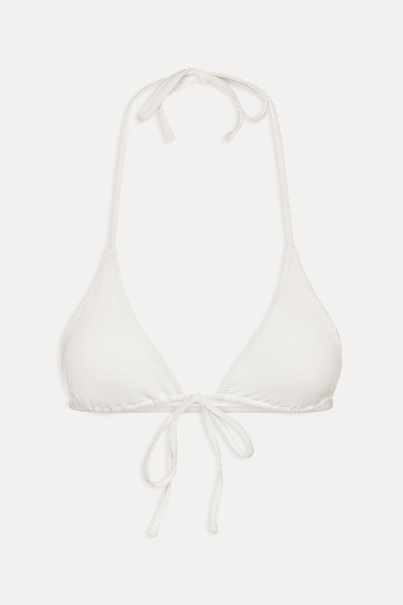 If you're looking for a skimpy bikini top, you'll adore Paradise. This halter bikini top will be your newest Frankies favorite with its adjustable coverage. Details Moderate support perfect for lounging Adjustable ties at the chest and neck *may be slightly sheer when wet Fabric 80% Nylon + 20% Spandex Model Size & Fit This style runs true to size Laura is wearing a size Medium Height 5' 7" (170.18cm) Bust 34.4" (86.5), Waist 23.5” (59.68cm), Hips 35” (88.9cm)