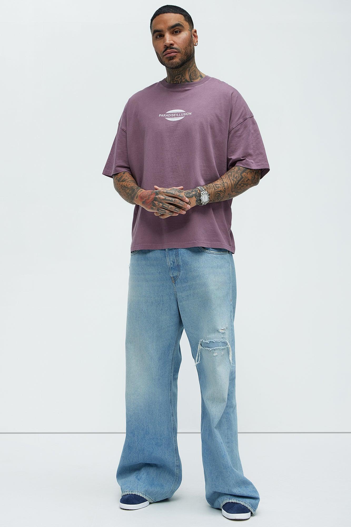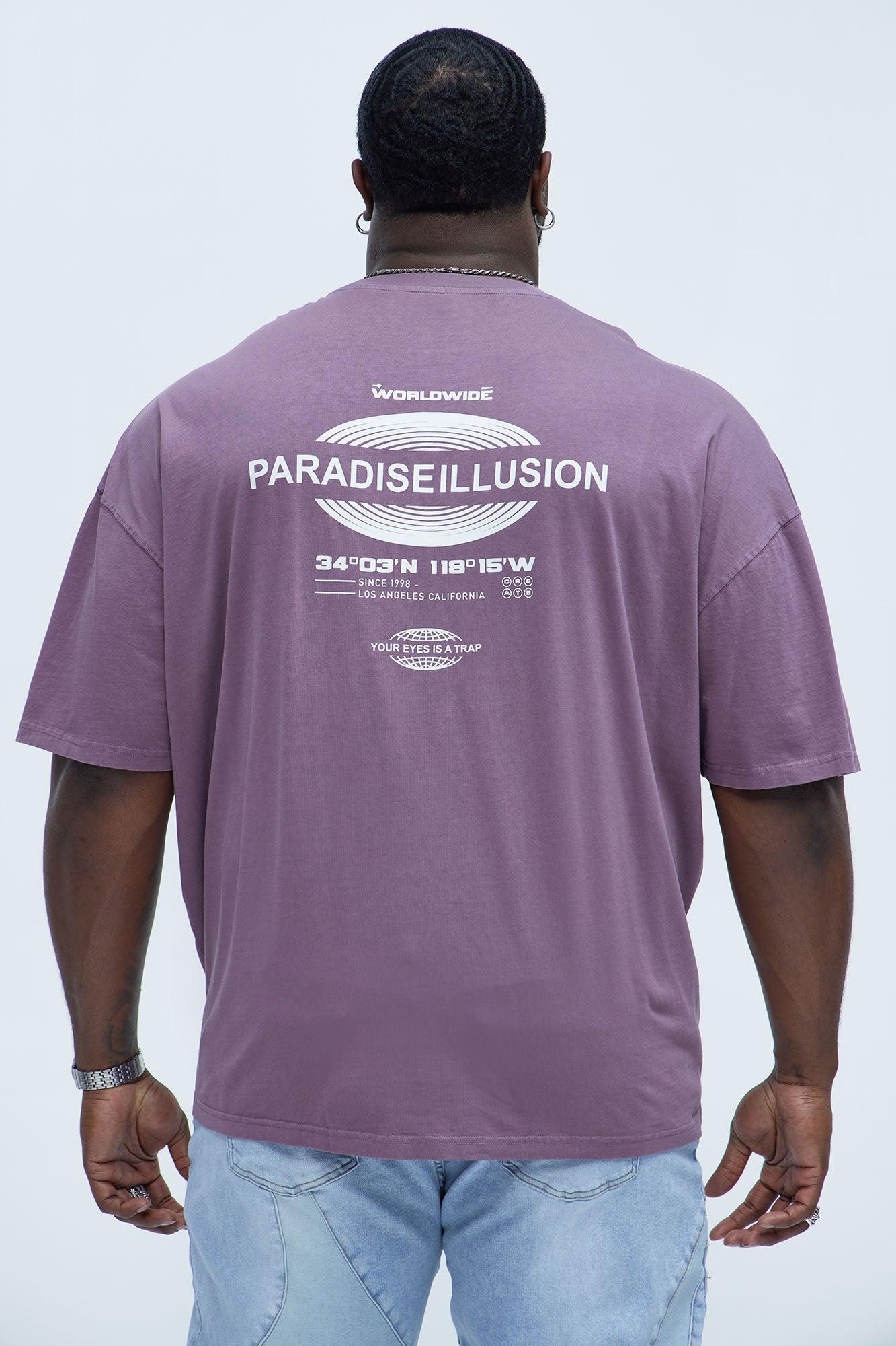 Paradise Illusion Oversized Short Sleeve Tee - Purple