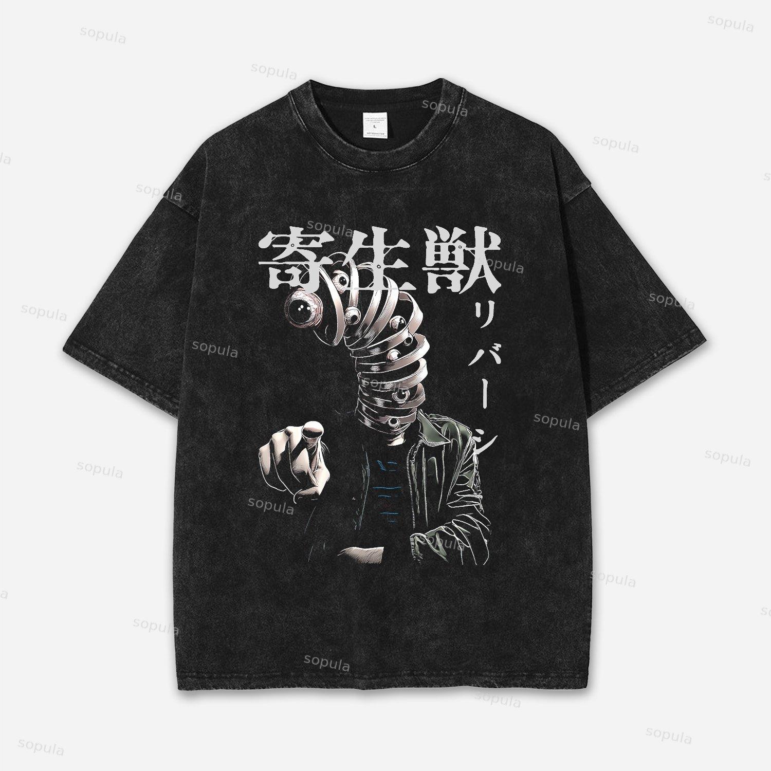 SPU: CP-225801-WJY Fabric: 100% Cotton Fabric Weight: 240g Pattern: Parasyte The Maxim Process: Acid Washed Gender: Women,Men Season: Summer Size Range: M-3XL Color: Black Print Position: Front