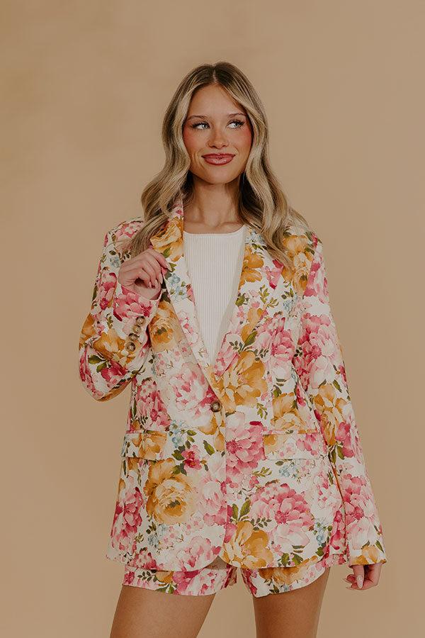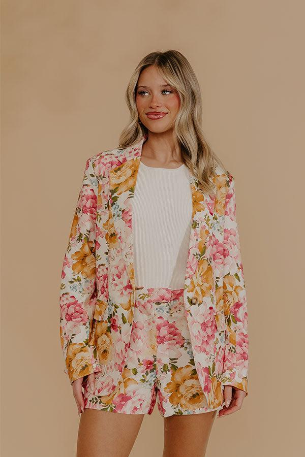 Designed with a relaxed blazer silhouette, this piece feels easy to wear while still looking put together. Fully lined for a smooth fit, it features thoughtful details that elevate the overall look without feeling stiff or formal. It pairs perfectly with our "Paris En Fleurs High Waist Floral Linen Blend Shorts" for a coordinated set that feels effortlessly chic.