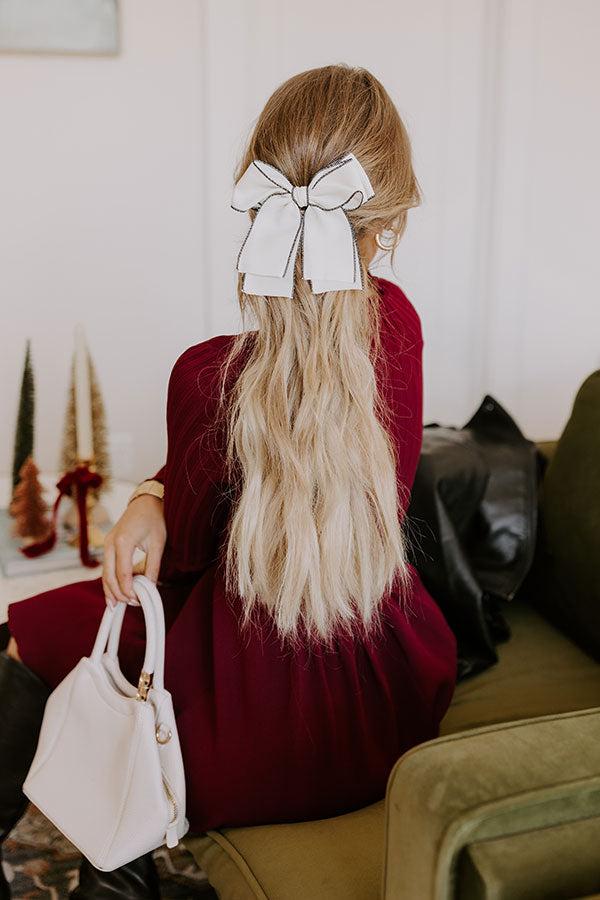 - Add a romantic pop of style to your look with this adorable bow! It instantly elevates any outfit with sweet energy. - A soft ribbon with black edges tied into a bow - A metal spring barrette back - 6x6 inches