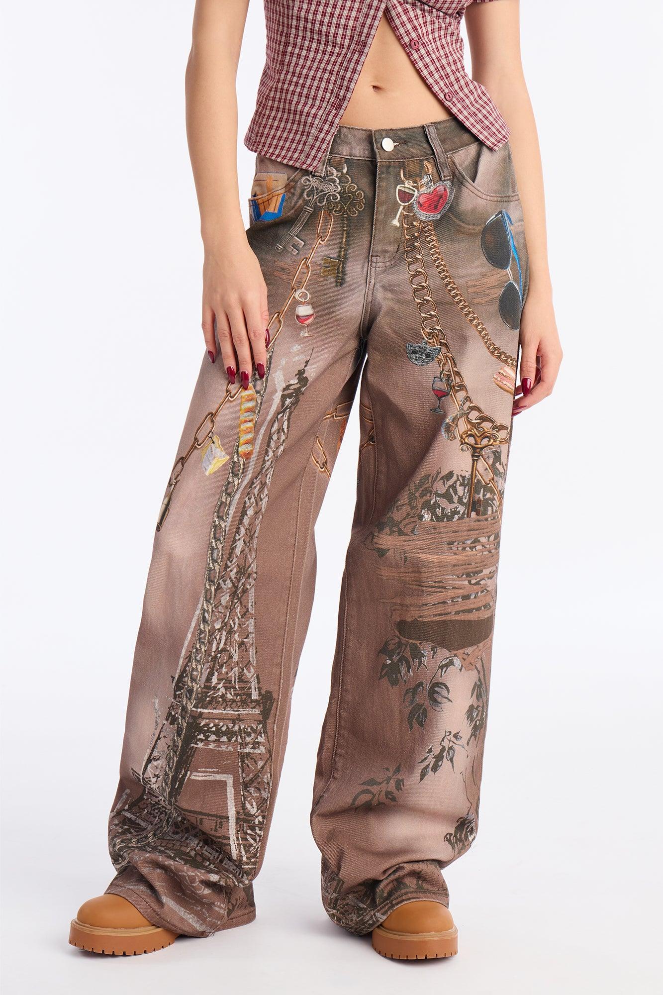 Parisian Dreams Printed Jeans - Brown/combo Female