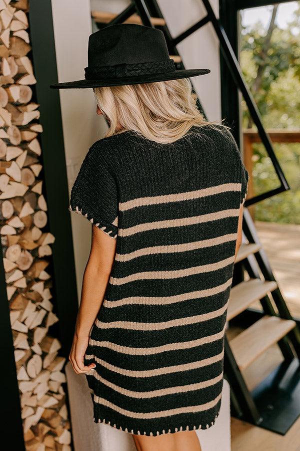 - Keep it cozy-chic with this adorable knit mini dress! Whether you're meeting up for coffee or out for a night with your girls, this sweet dress will keep you looking stylish. - Unlined knit material with a ribbed texture and an oatmeal hues striped pattern - A mock neckline - Short sleeves - A relaxed yet flattering silhouette that ends in a straight mini dress length hemline