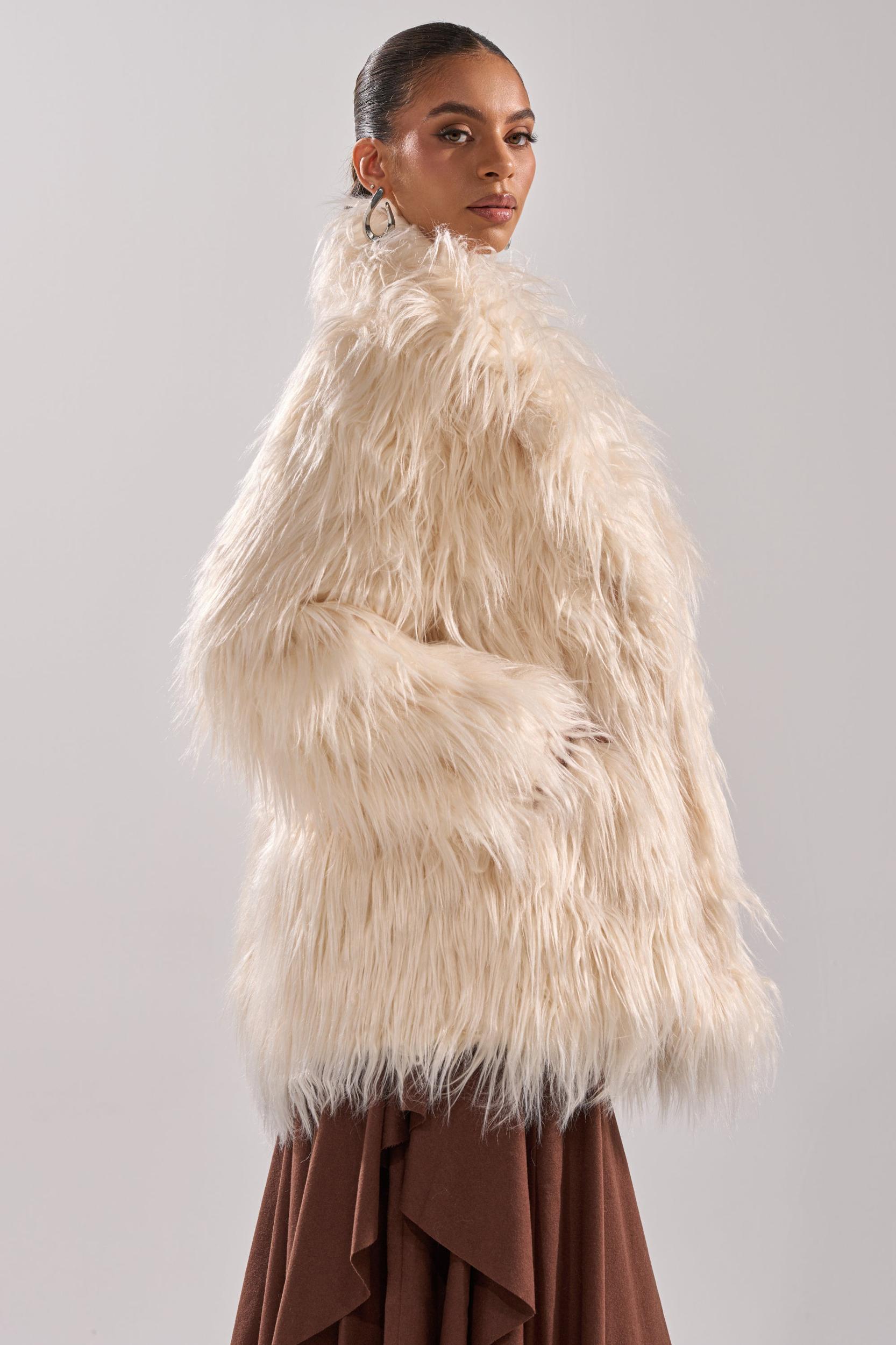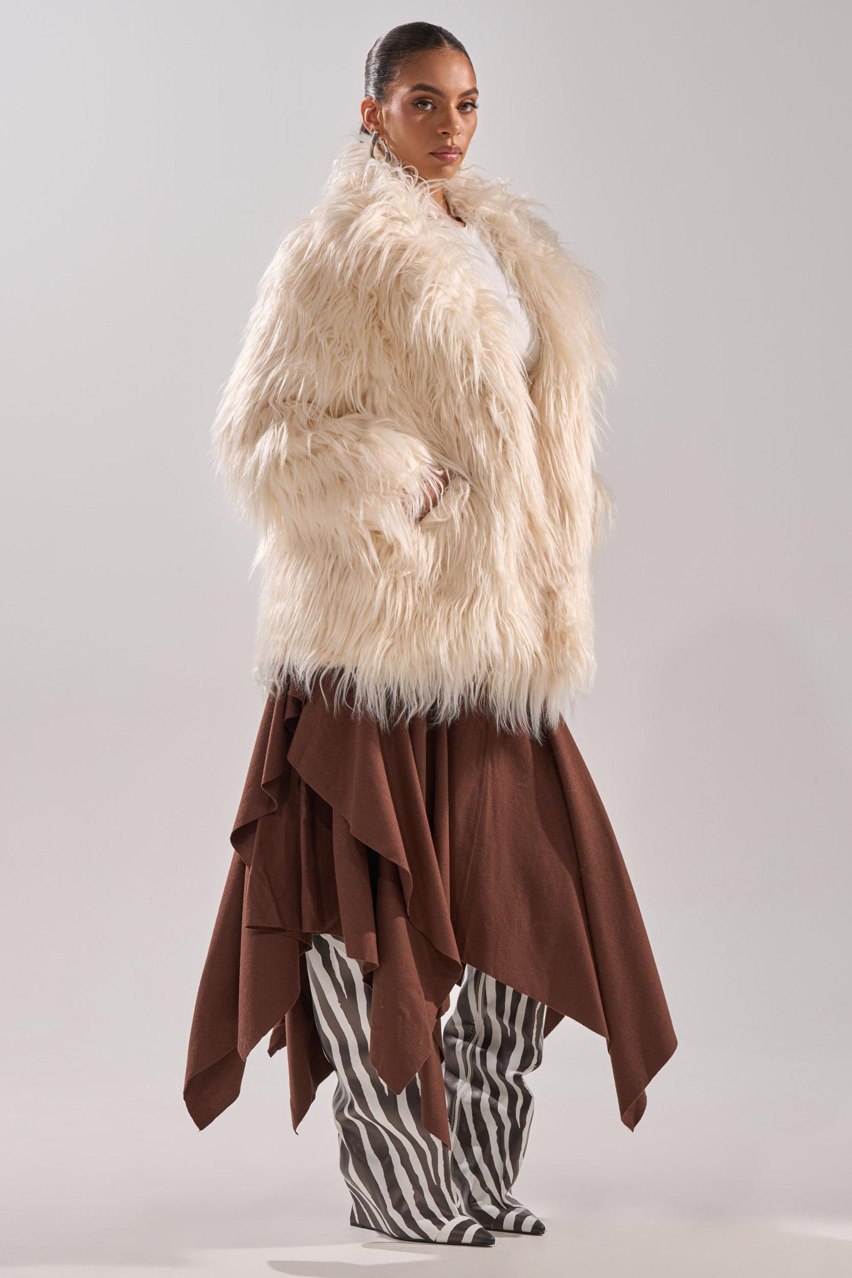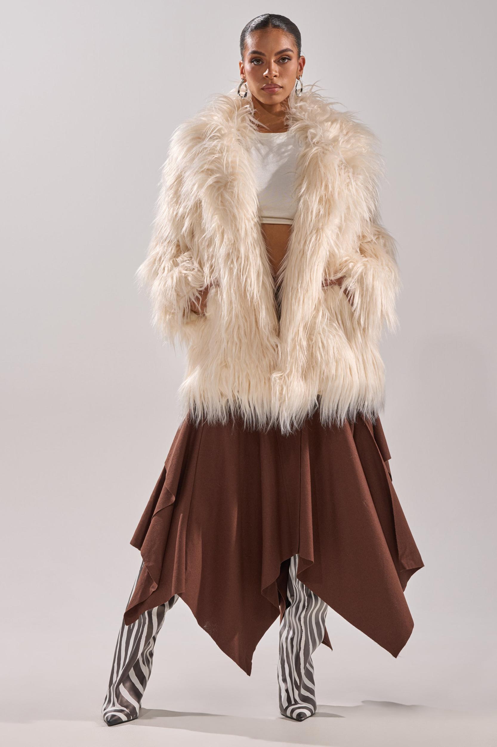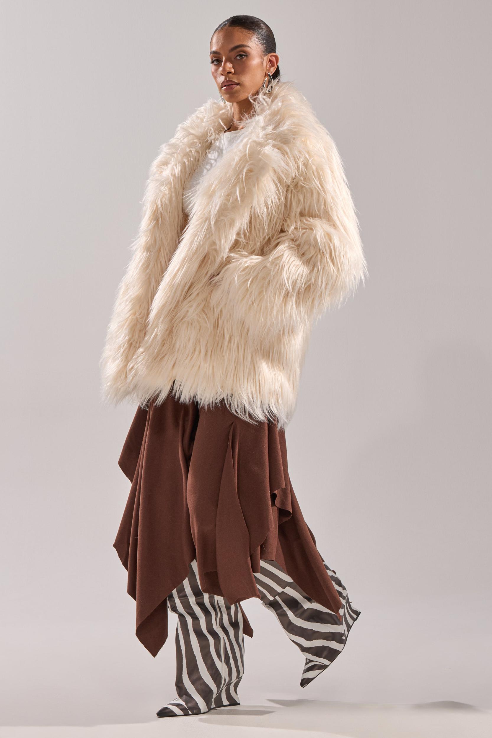 Stroll through the streets in The AKIRA Label Park City Faux Coat. Crafted from plush, shaggy faux fur, this elegant jacket boasts an oversized collar, long sleeves, on-seam waist pockets, a satin inner lining, and an open front. Complete with a slightly oversized, boxy fit. - Fur: 65% Acrylic 35% Polyester- Spot Clean Only- No Stretch- Imported (all measurements approximate from size S/M)- 29” Shoulder to Hem- 20” Shoulder to Shoulder- 22” SleevesProduct ID: 1059687 (all measurements approximate from size 1X/2X)- 32” Shoulder to Hem- 23” Shoulder to Shoulder- 24” SleevesProduct ID: 1059689