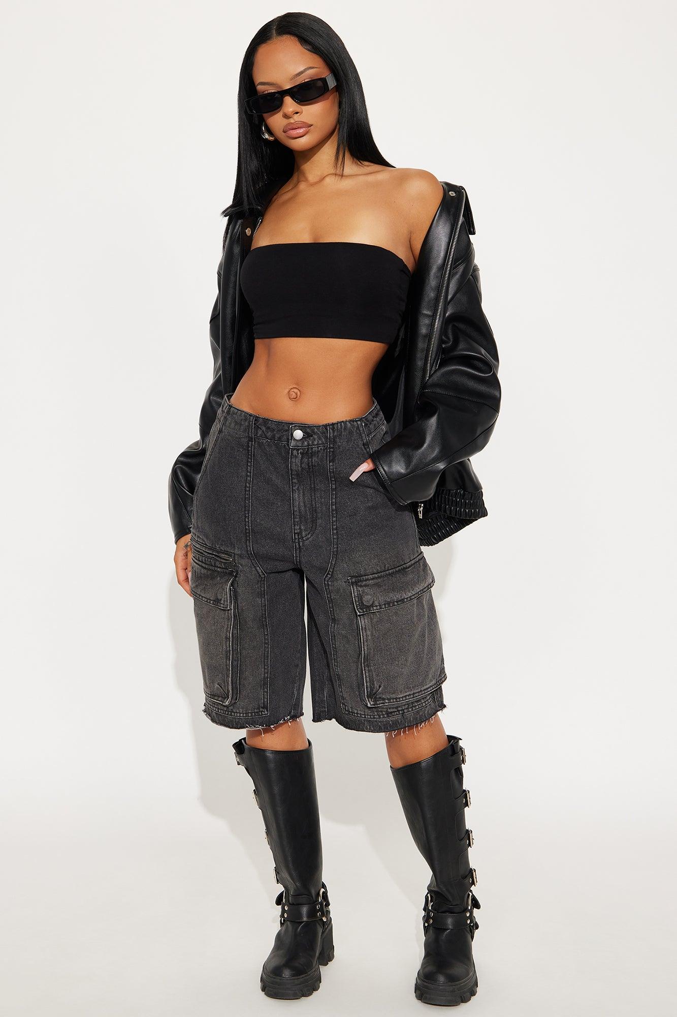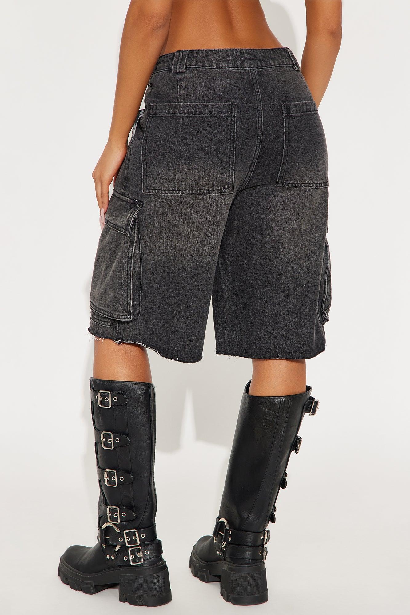 Available In Black Wash, Light Wash, Medium Wash And White. Denim Short Utility Pockets Raw Hem Zipper Detail 13" High Rise 11.5" Inseam Non Stretch Disclaimer: Due To The Specialized Wash & Distressing Process, Each Garment Is Unique. 100% Cotton Imported