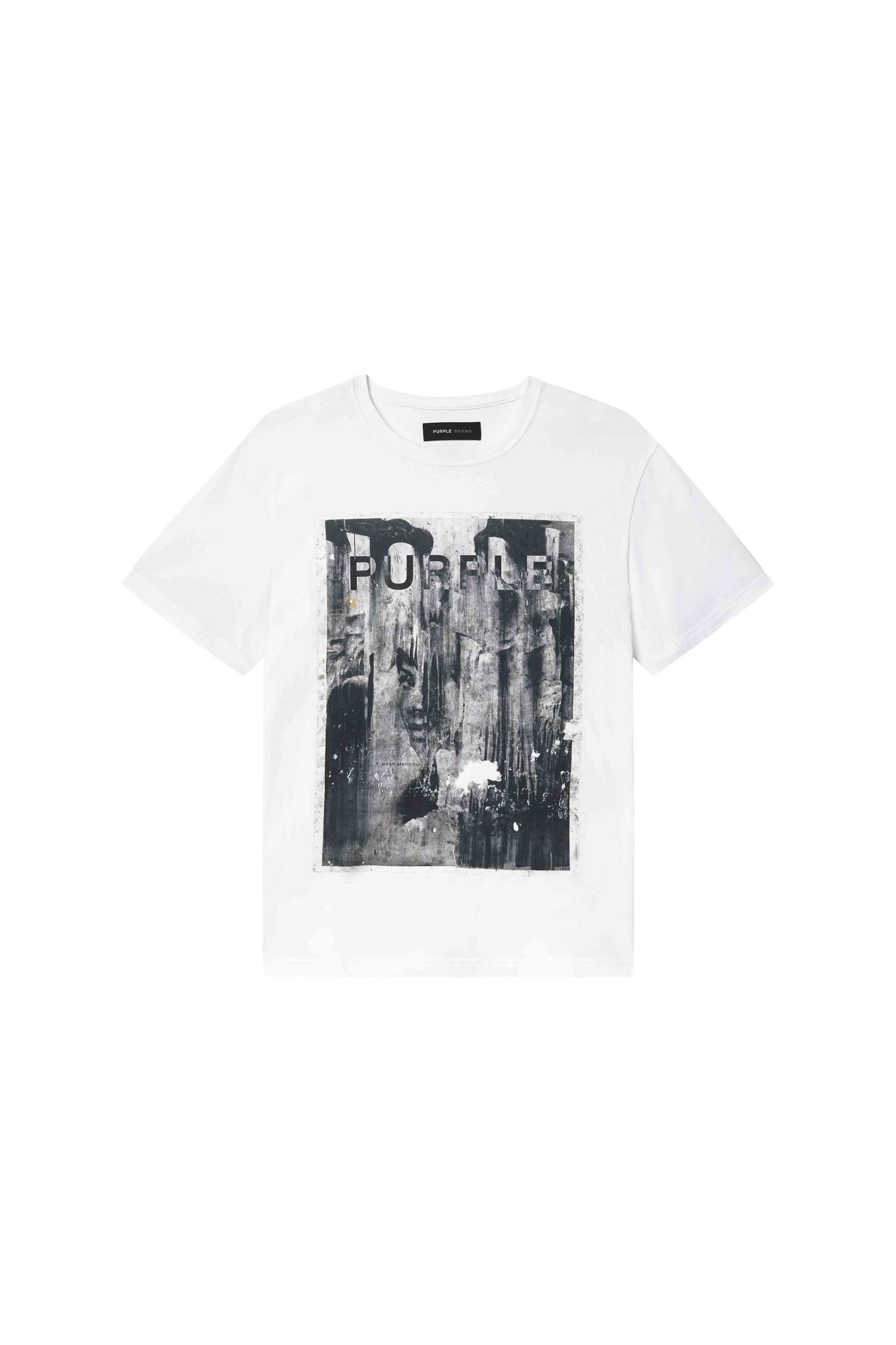 This white crewneck tee comes in a soft jersey knit, designed to retain a clean look after multiple washes. It’s cut for a slim fit from 100% cotton with a digital print and Purple brand lettering. Pre Fall 2025 White Label 100% Cotton 28 1/8" Length, 21 1/4" Chest, 17 3/4" Sleeve Slim Fit Clean Jersey Digital Print