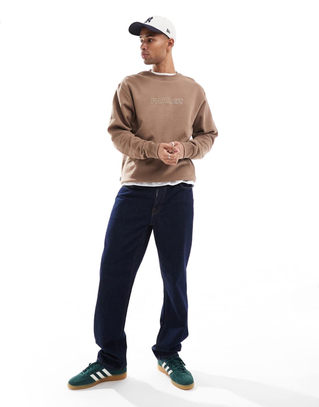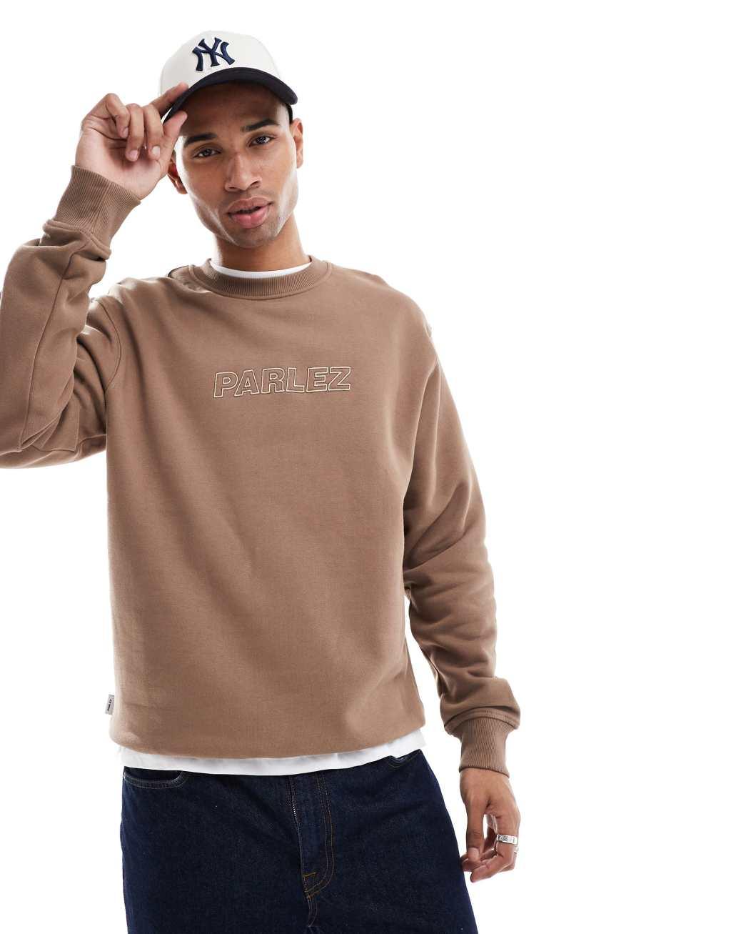 Parlez oversized logo embroidery crew neck sweatshirt in brown