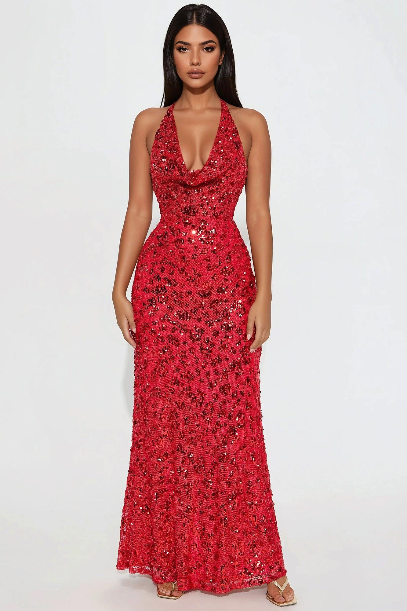 Party All Summer Sequin Maxi Dress - Red