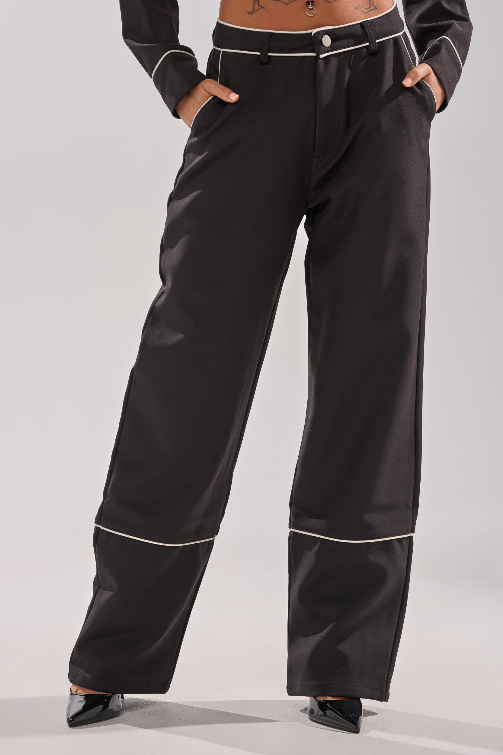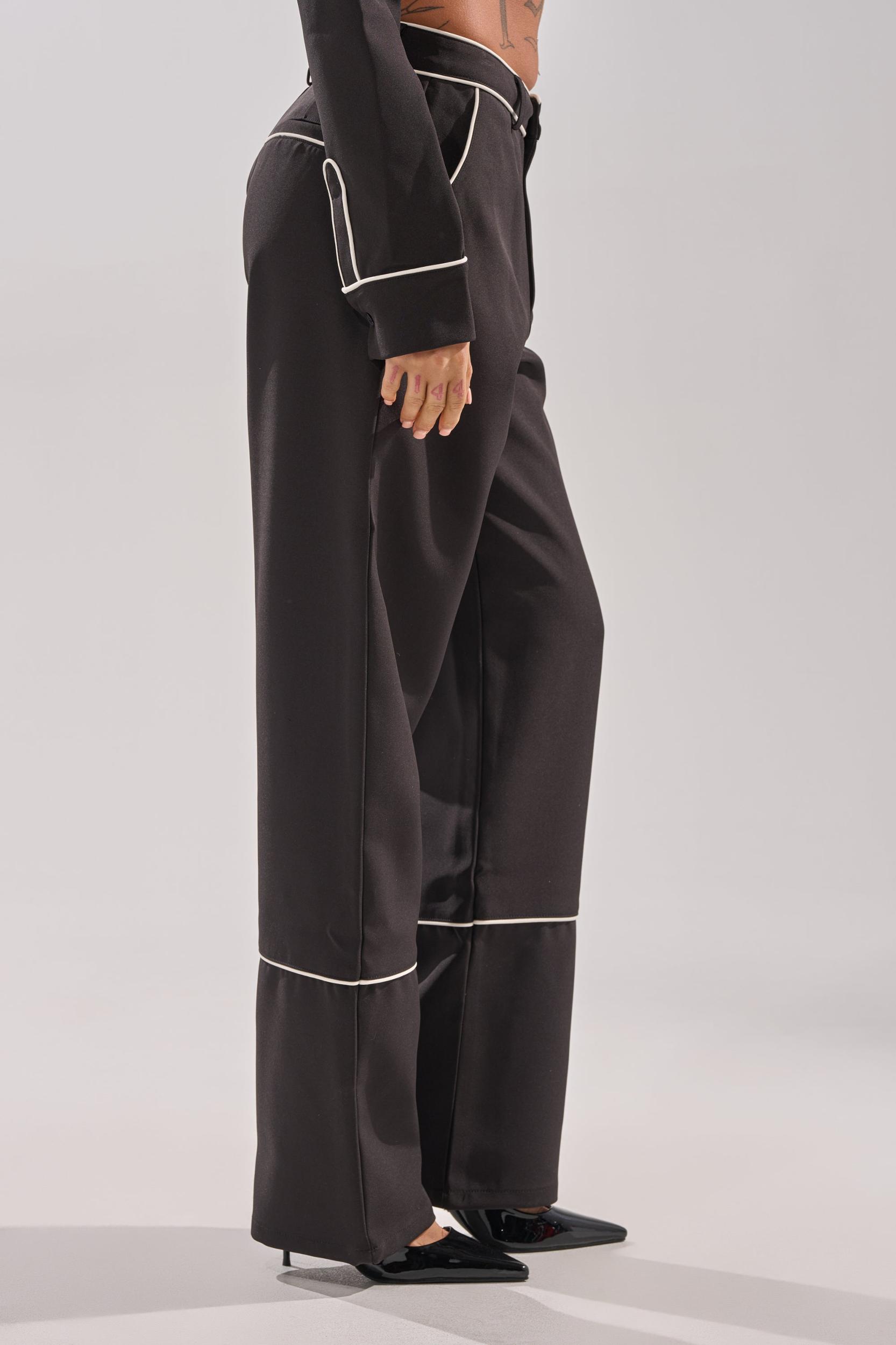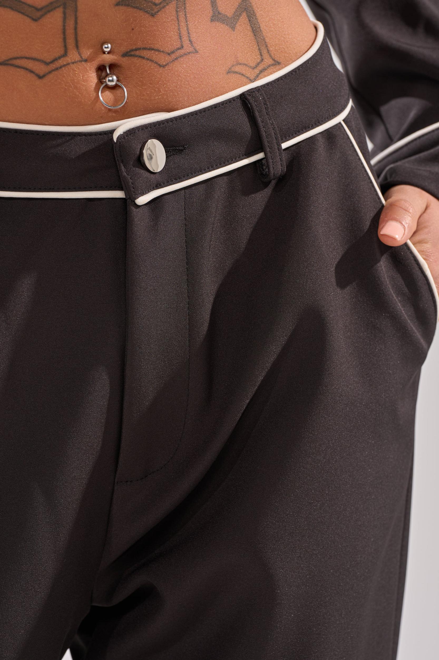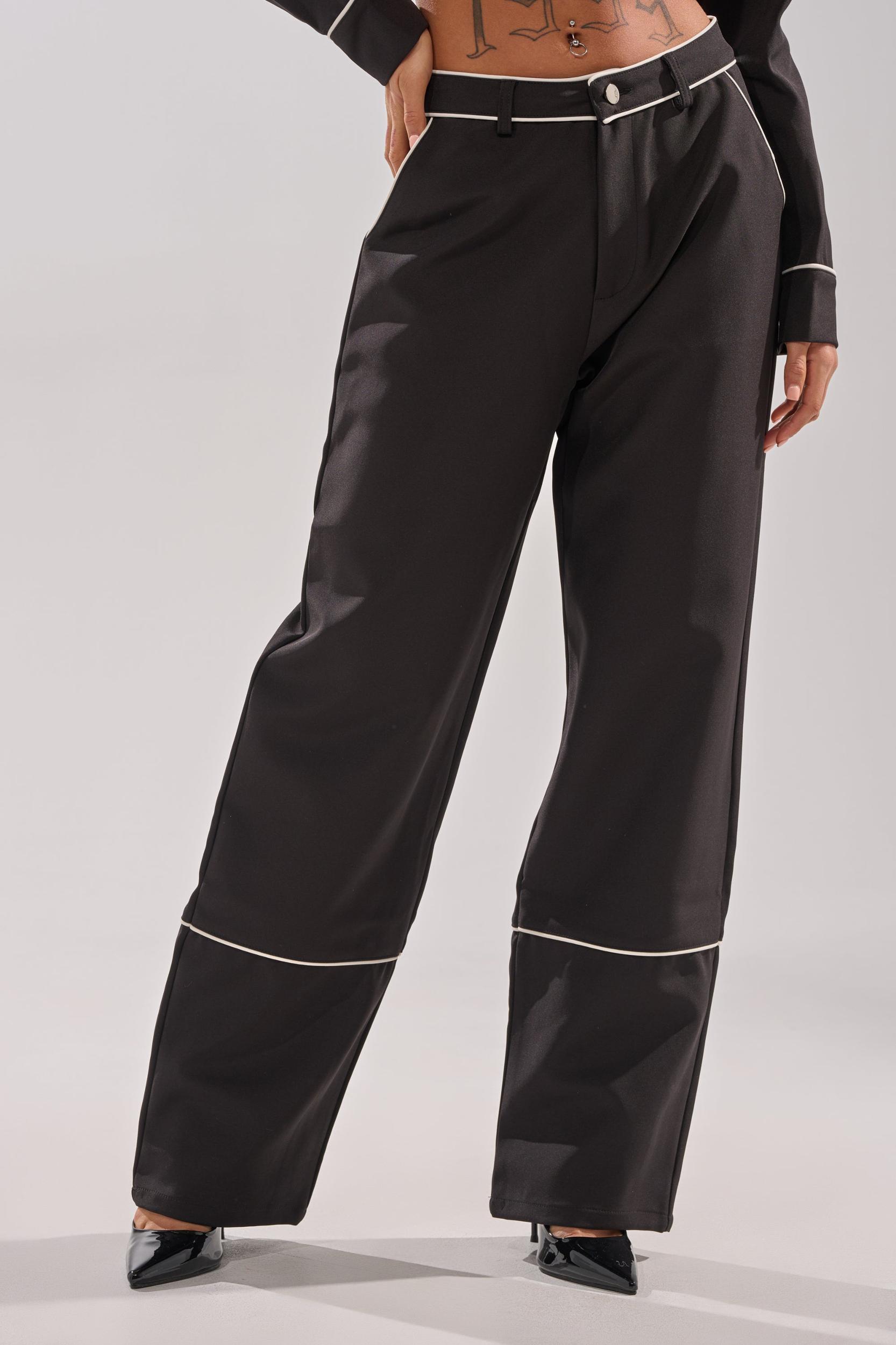 The AKIRA Label Party At My Place Trouser is crafted from a sleek, non-stretch fabric and boasts a high-rise, wide-leg silhouette that elongates the figure. It also features white trim at waistband, side-slant and rear pockets, and lower leg for tasteful contrast, and is complete with function belt loops and a zip-button front closure. Style with the coordinating Party In The Back Button Down and chic pumps for a polished look. - 100% Polyester- Hand Wash or Dry Clean- No Stretch- Imported (all measurements approximate from size small)- 11.5” Rise- 30.5” InseamProduct ID: 1063186 (all measurements approximate from size 1X)- 14” Rise- 31.5” InseamProduct ID: 1063190
