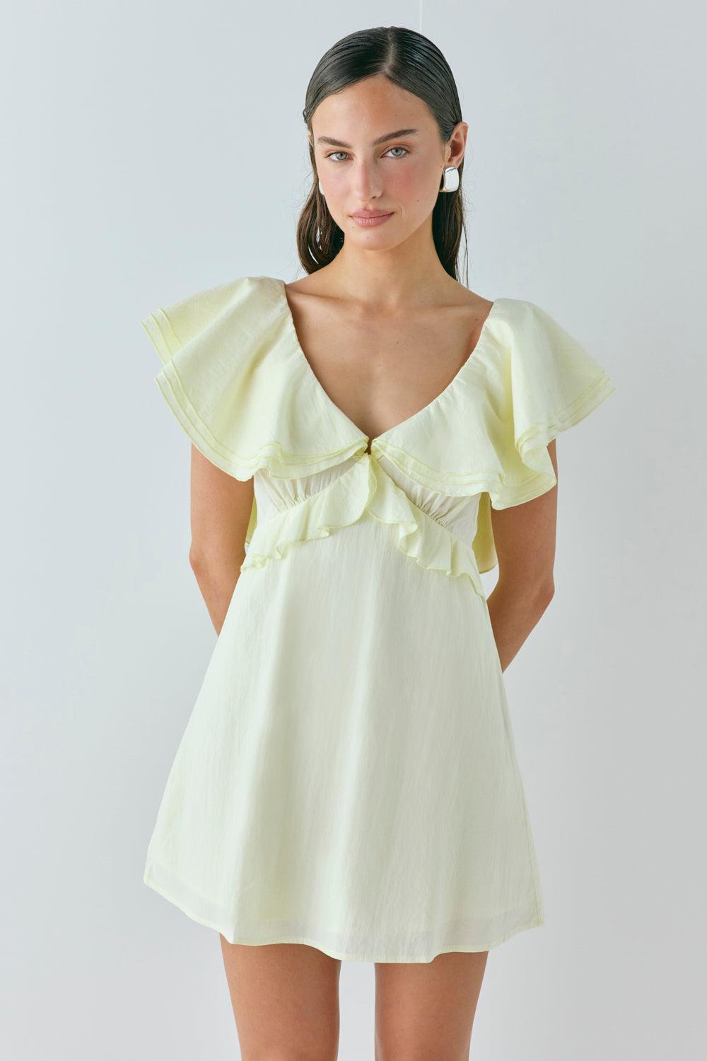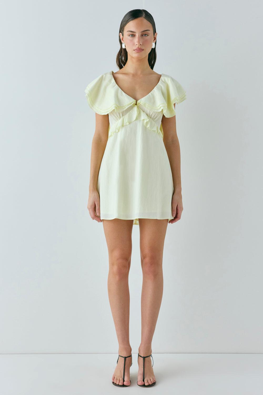 This number has us dreaming of long lunches & visiting galleries in Paris... With a frill running along the neckline & shoulders; this mini dress has details in all the right places. Details Main: 100% Cotton Lining: 100% Polyester Centre back zip opening Tie up back Frill detailing This style runs short Length 78cm / 30.5in (taken from size AU 8 shoulder to hem) Cold Hand Wash / Cool Iron Designed in Australia Size & Fit Sanne is 177cm / 5ft 9.5in - wearing size AU 8 View our size guide for more information