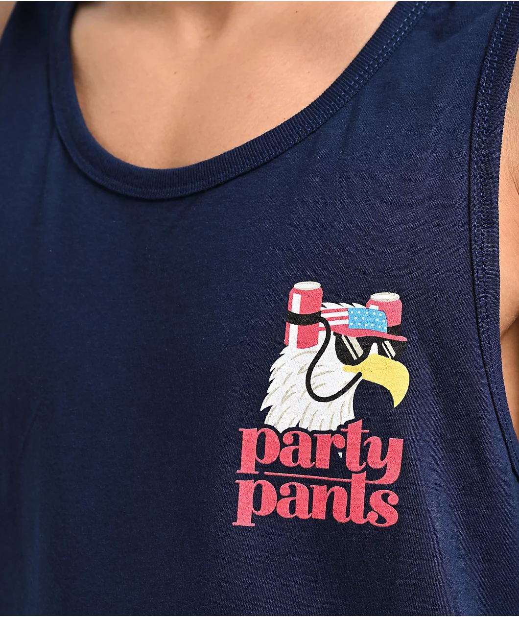 Capturing the life of the party in a navy blue colorway, Party Pants offers the Shred Eagle tank top in a 100% cotton build with screened, patriotic graphics on the left chest and back to root for the USA. Combining freedom with fun, the left chest d