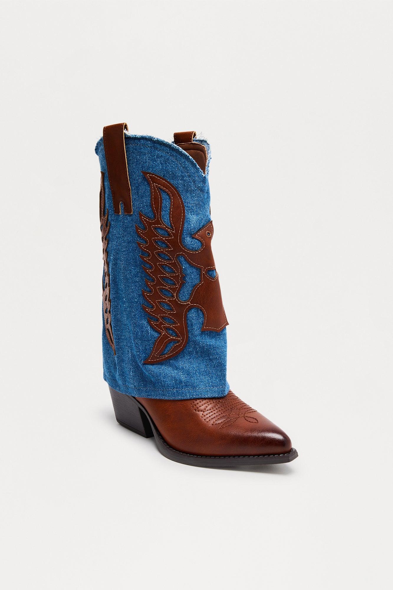 Paso Denim Overlay Cowboy Boots - Cognac Female