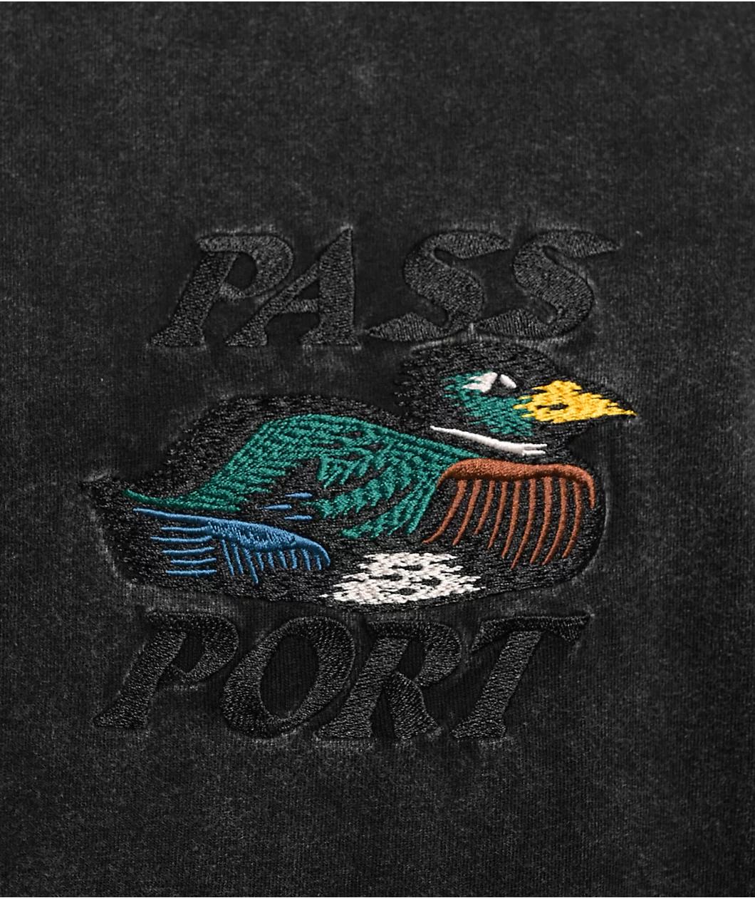 From Australian skate brand Passport, the black Fast Duck t-shirt arrives with a faded mineral Acid wash for a vintage look. Showcasing an embroidered graphic of a Mallard framed by capitalized branding on the front, the 100% cotton short sleeve empl