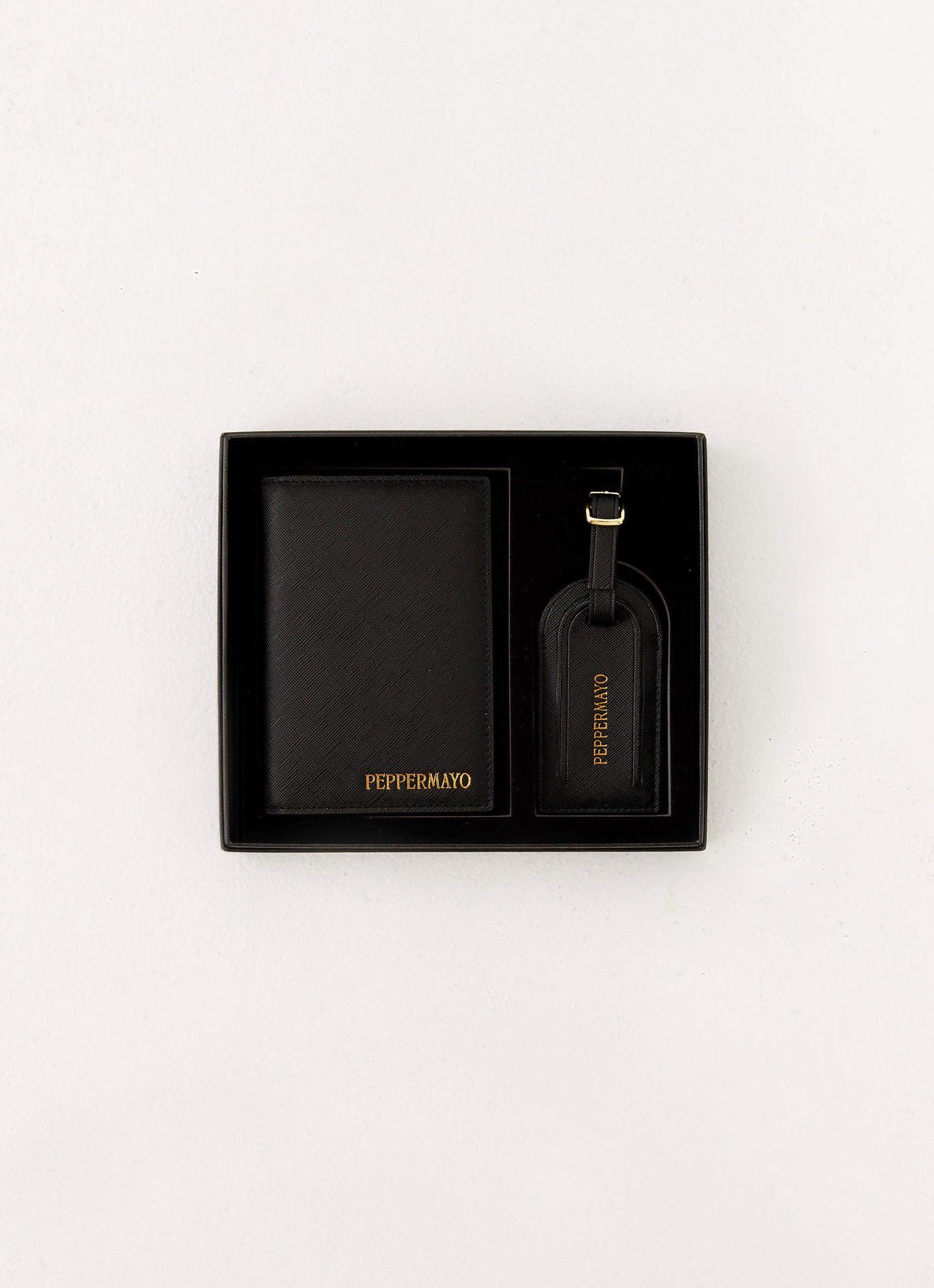 Peppermayo Exclusive The Passport Holder & Luggage Tag set is where sophistication meets jet-set energy. Designed with sleek black and gold detailing, it’s the perfect travel companion for those who move with style. Elevate your essentials and take off in effortless luxury. - Black- Passport Holder- Luggage tag- Gold detailing One size