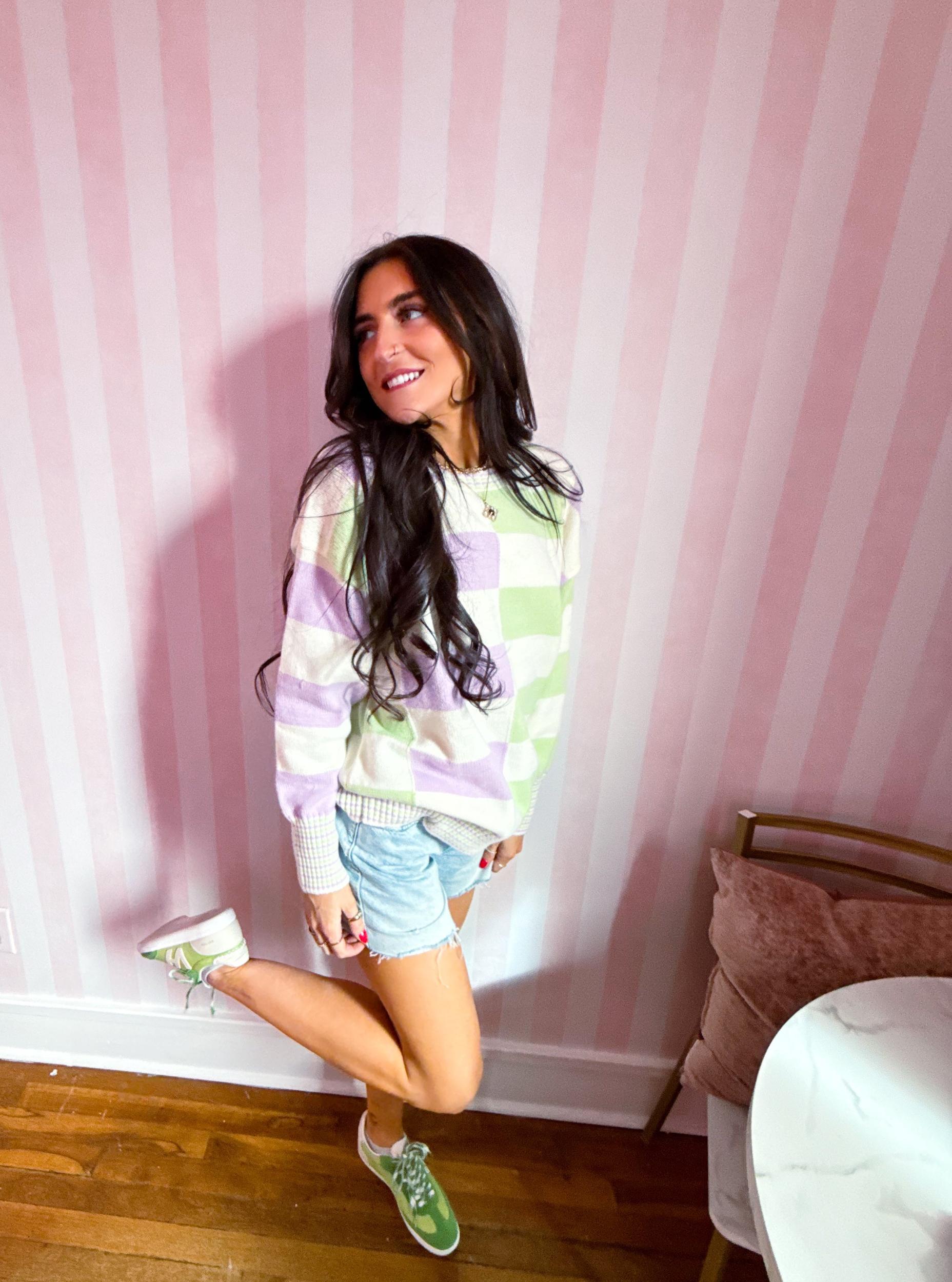 Rock a playful and unique look with our Pastel Picnic Knit Sweater! This poly color block stripe sweater boasts a loose fit and multi color rib, adding a touch of fun to your wardrobe. Perfect for a cozy and trendy picnic outing or a casual day with friends.
