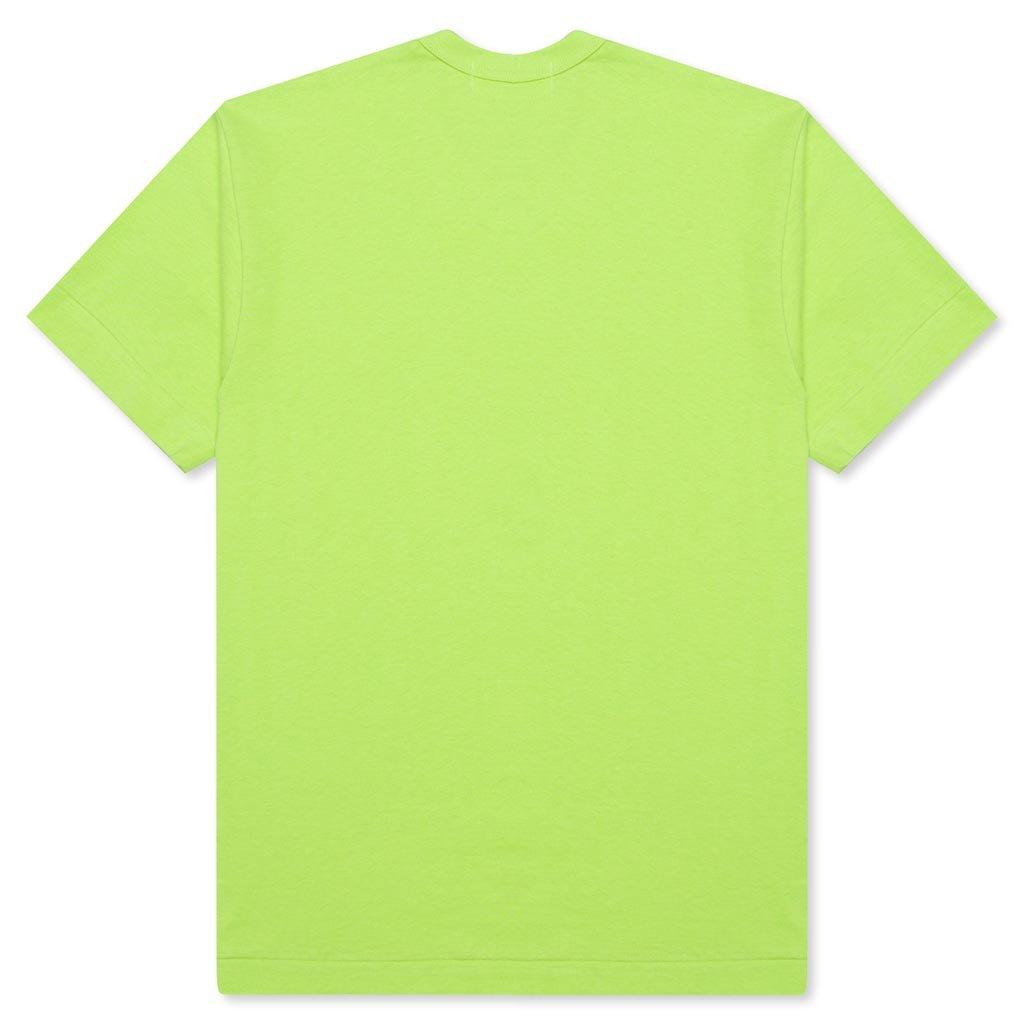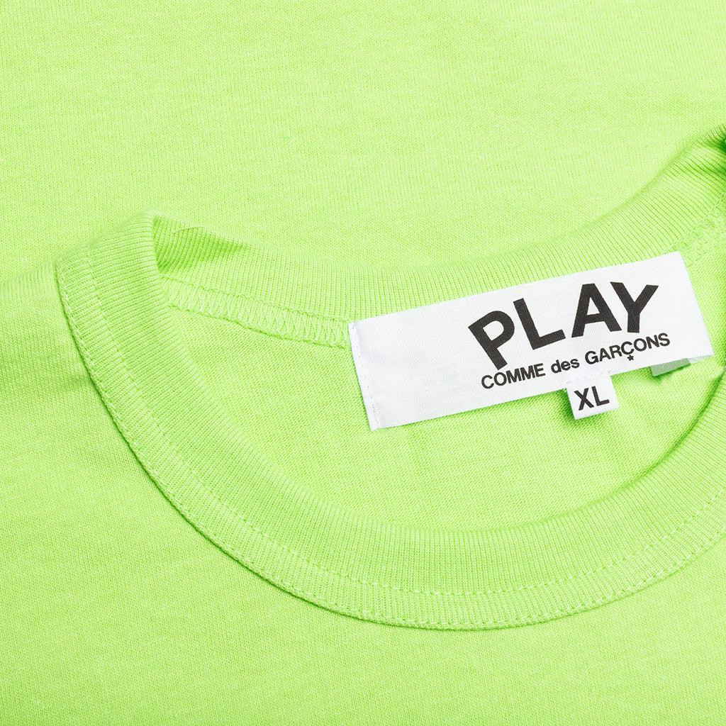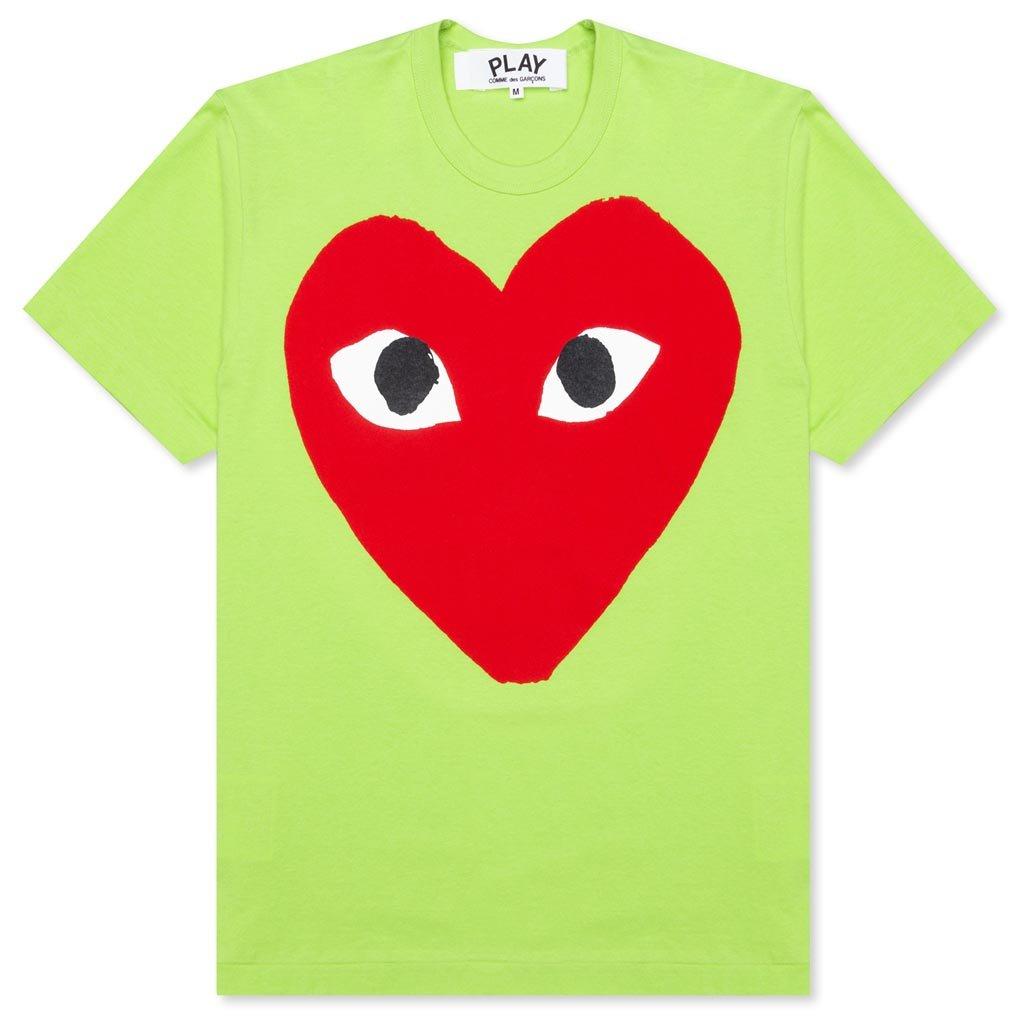 The concept of the Comme des Garcons PLAY line is design by not designing. Characterized by the iconic red heart logo designed by artist Filip Pagowski, the line is a collection of unisex basics, fragrances, and footwear. Pictured is the Comme des Garcons PLAY Pastelle Red Logo T-Shirt in Green. AZ T274 051 2 COMME DES GARCONS PLAY APPAREL HAS A SMALLER FIT, WE RECOMMEND SIZING UP. 100% Cotton Printed branding Ribbed trims Made in Japan Style no: AZ-T274-051-2 condition: new