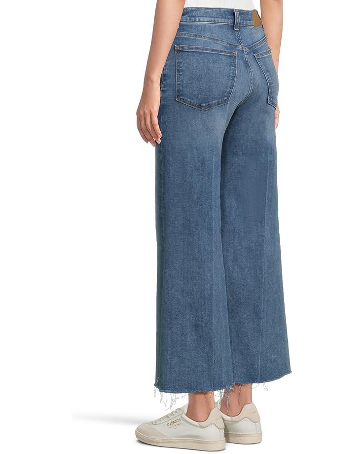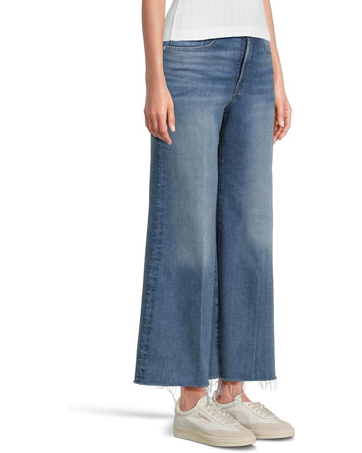 Patch Pocket Flared Wide Leg Jeans with Raw Hem in Shalimar Wash