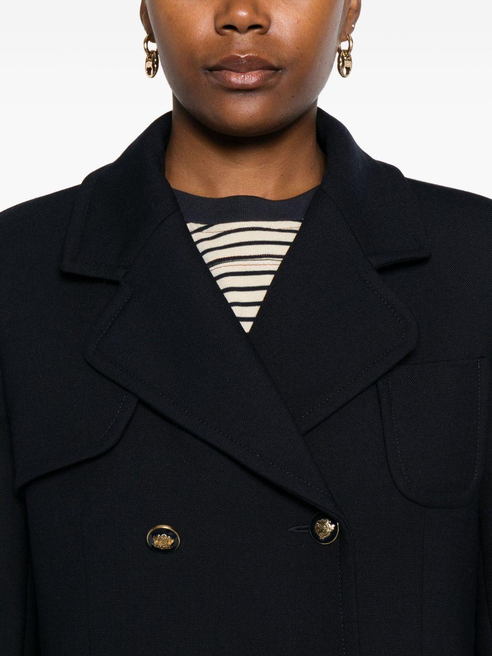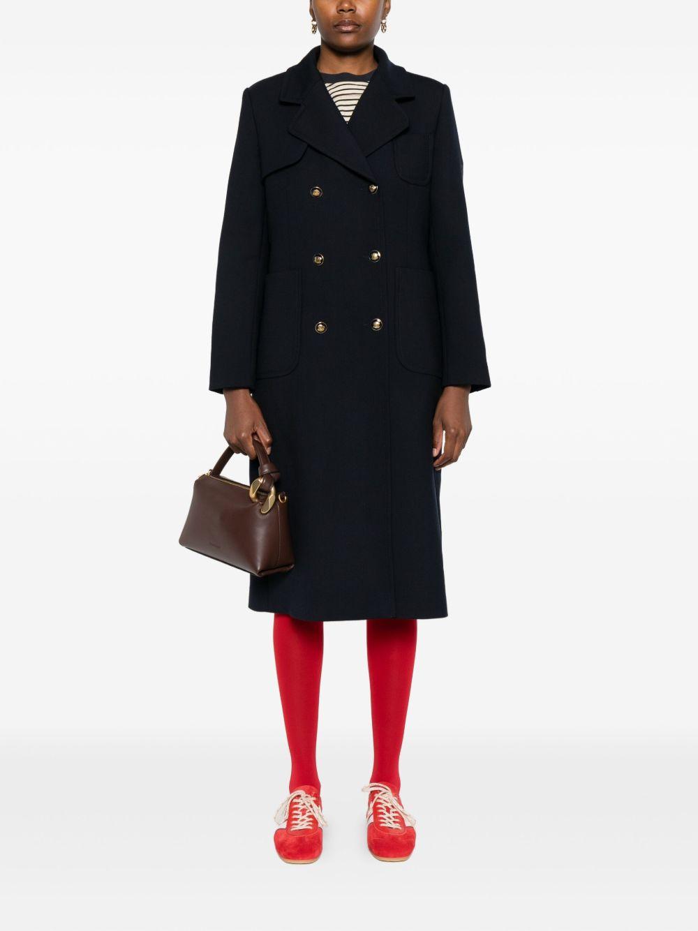 SANDRO patch-pockets double-breasted coat | Blue | navy blue | double-breasted fastening | gold-tone buttons | patch pockets | long sleeves | straight hem | Polyester/Virgin Wool/Elastane/Viscose | Double Breasted & Peacoats | Coats | Clothing | Women