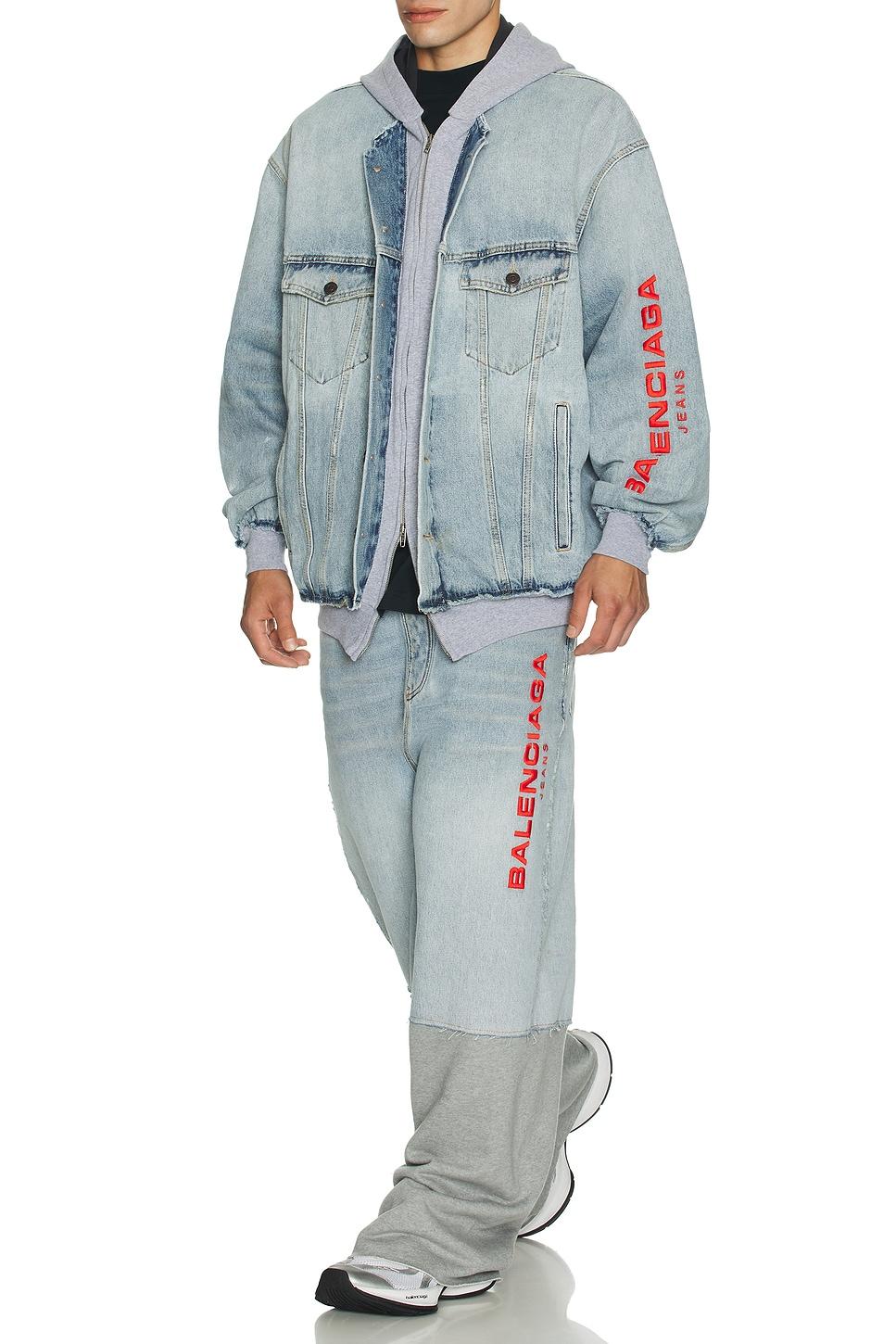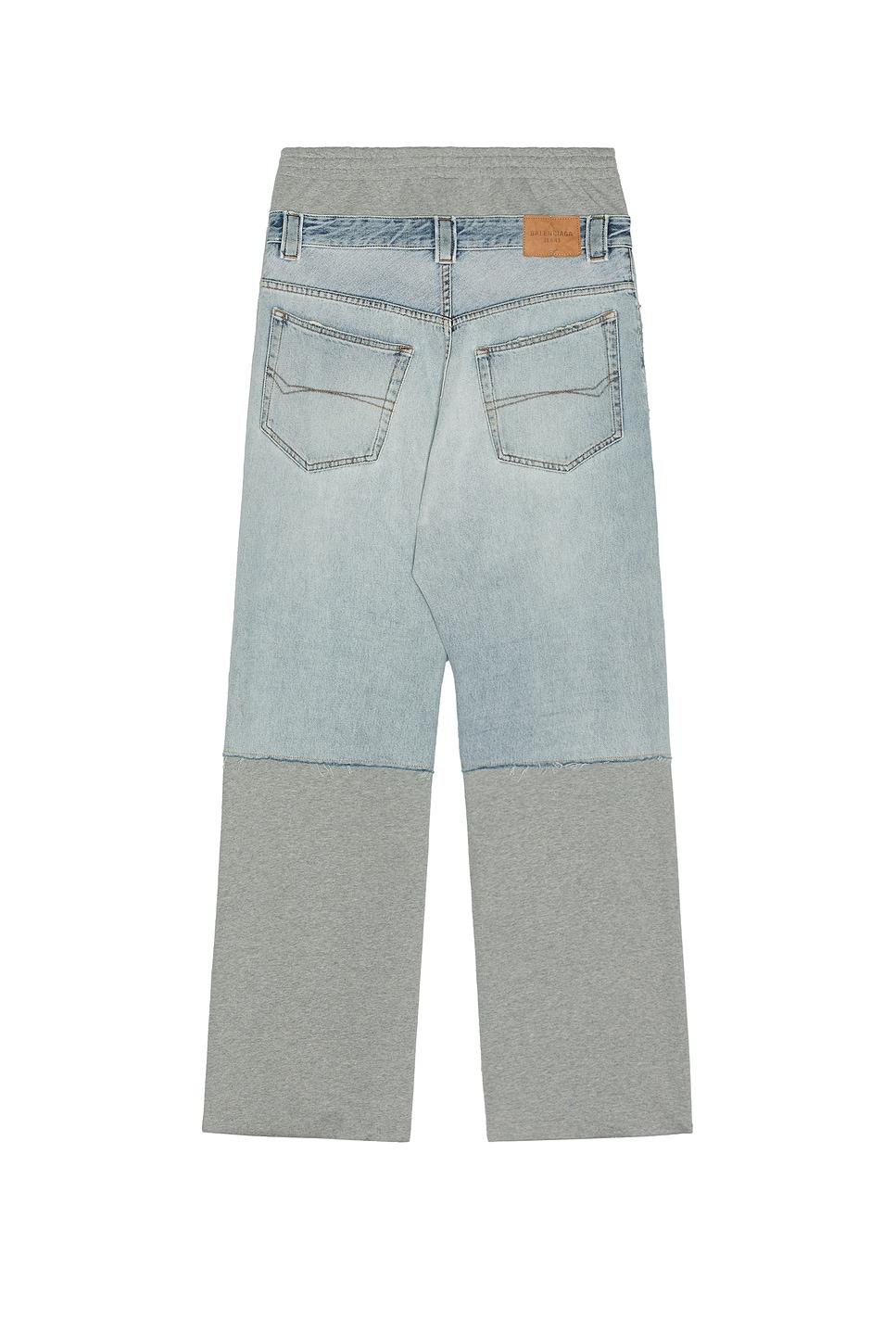 pants100% cotton / Machine wash / Pull-on styling with faux zip fly and elastic waistband / 5-pocket styling / Spliced cotton jersey and washed cotton denim / Made in Italy / Our Style No. BALF-MP95 / Manufacturer Style No. 831646TSW824200 / Model is wearing size M.