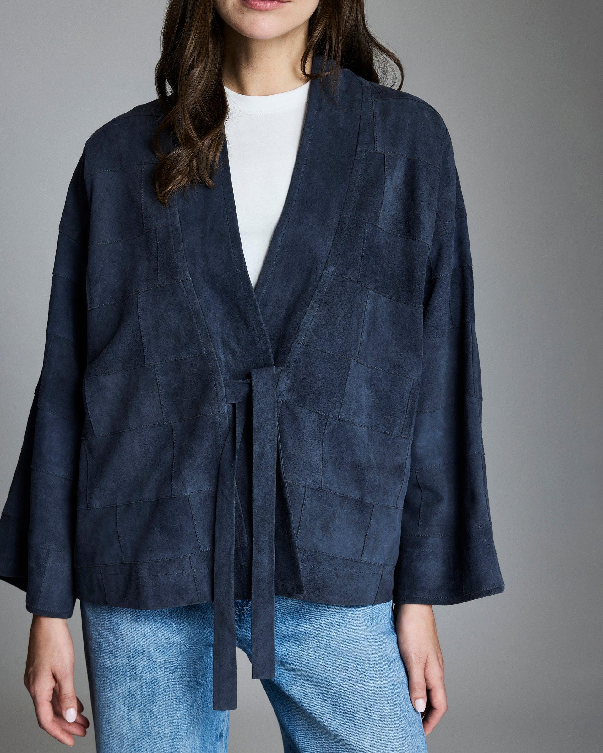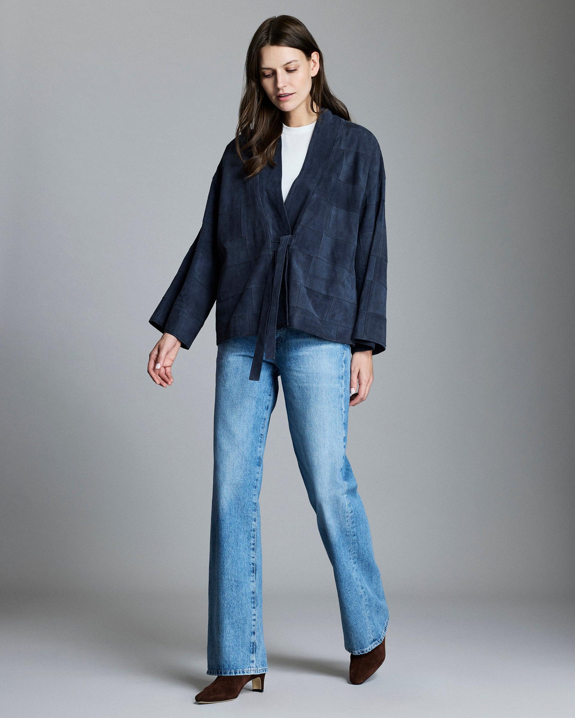 This standout piece takes the quilt-inspired construction of our bestselling Patchwork Denim Jacket, and elevates it in a sumptuous blue goat suede that's been garment-dyed for a lived-in look and feel, and will only get better with time. Thoughtfully finished with a self-belt at the waist, and lined with our signature