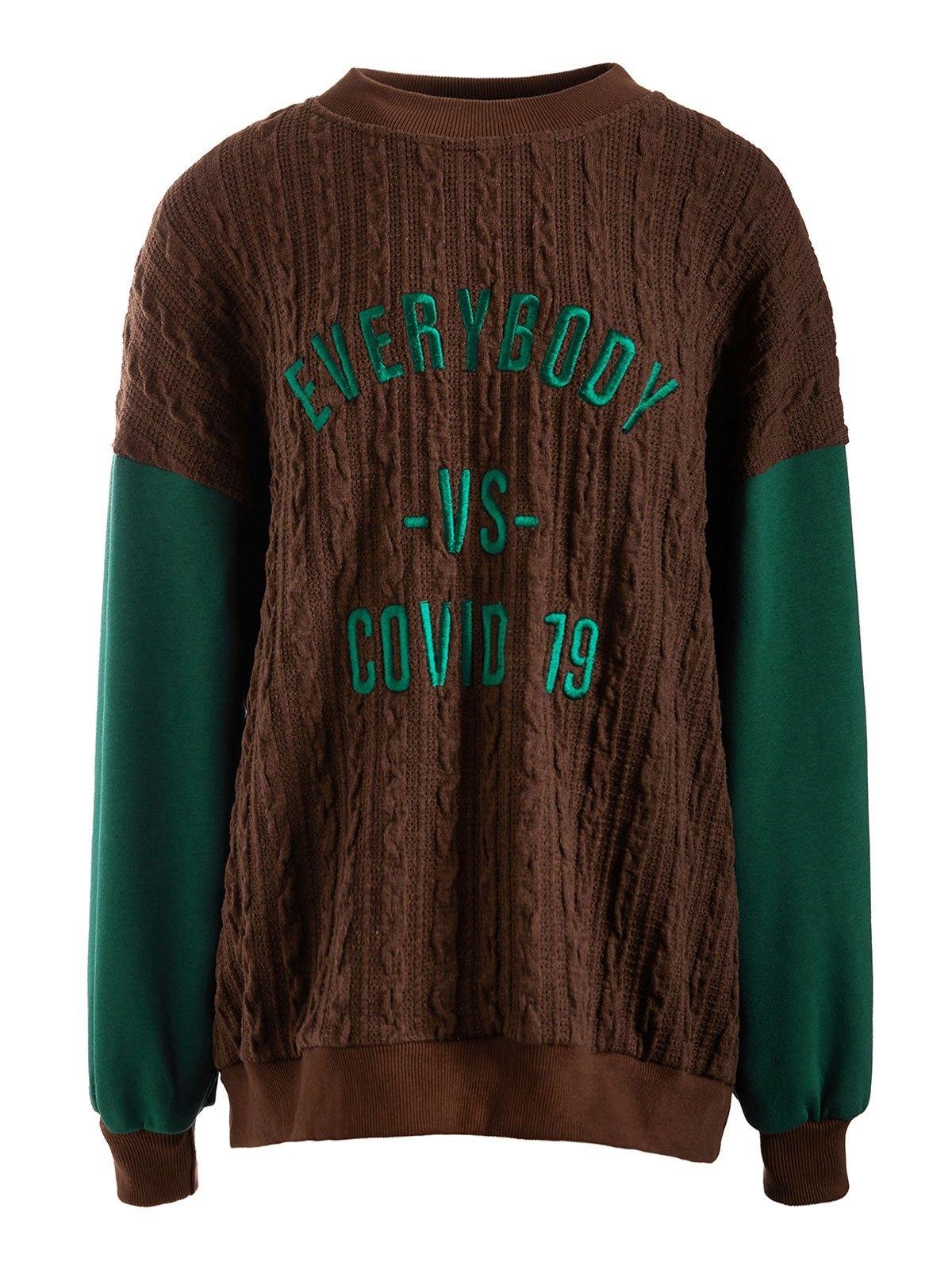 Patchwork Knit Letter Embroidery Sweatshirt