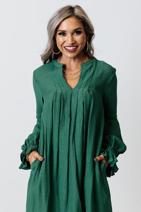 Keep your transitional style versatile with our green casual cute 'Patio In Paris Shift Dress' featuring lightweight and flowy material, a v-cut neckline, long bishop sleeves with flared cuffs, hidden side pockets, and a relaxed silhouette that falls into a straight mid-thigh length hemline! Measurements S : Bust 37", Hip 42", Length 34", Sleeve Length 23", Slip Length 32.5", Waist 38". M : Bust 39", Hip 44", Length 34.5", Sleeve Length 23.5", Slip Length 33", Waist 40". L : Bust 41", Hip 46", Length 35", Sleeve Length 24", Slip Length 33.5", Waist 42". XL : Bust 43", Hip 48", Length 35.5", Sleeve Length 24.5", Slip Length 34", Waist 44".