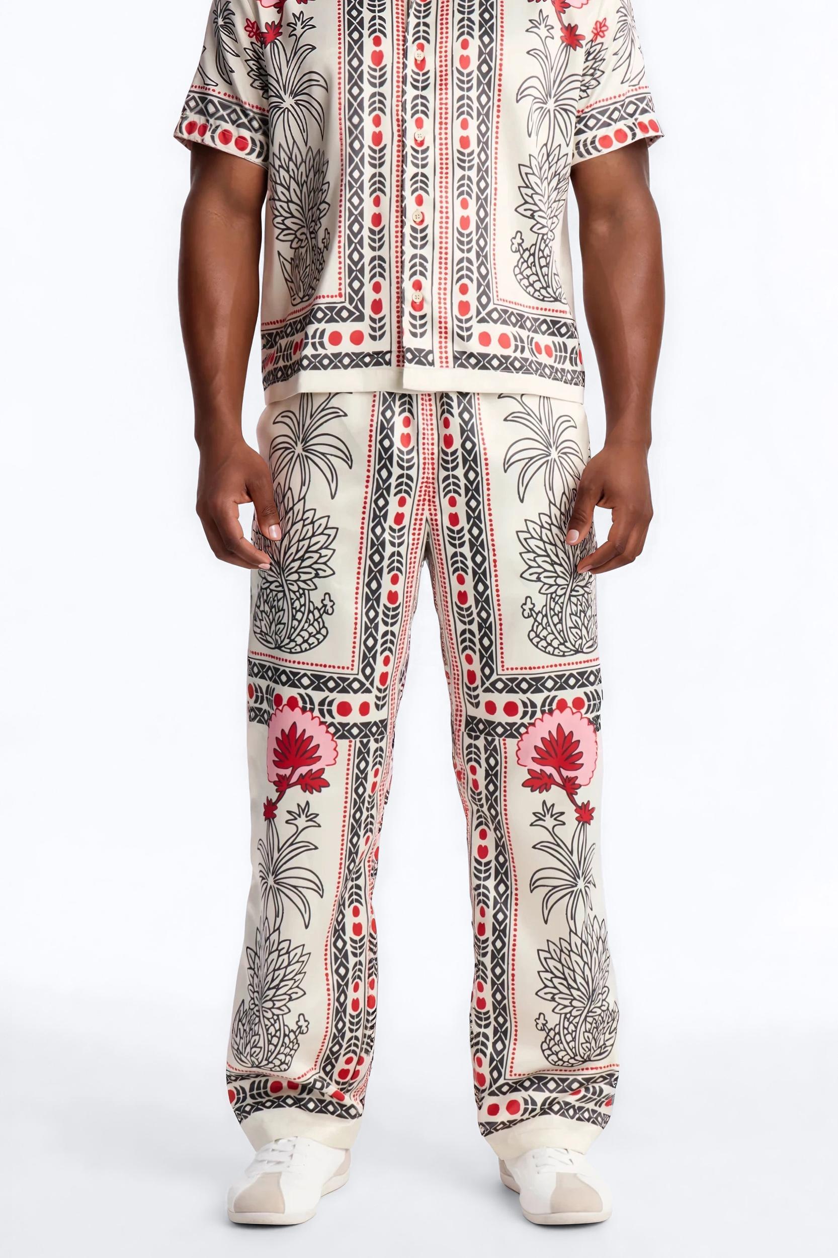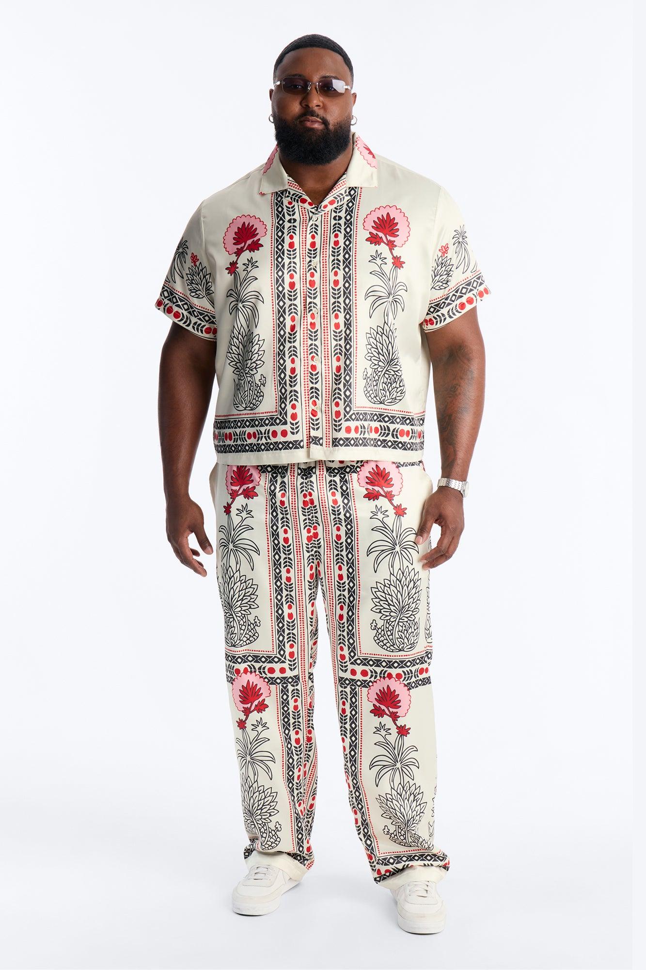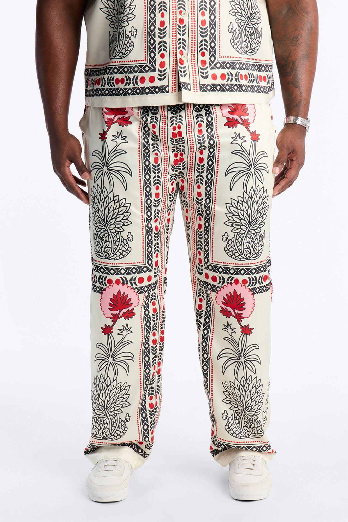 Available In White. Elastic Waist Drawstring Side Pockets Novelty Print Pair With "Patras Cuban Collar Button Up Shirt" Disclaimer: Print Placement Will Vary. Self: 100% Polyester Imported California Proposition 65WARNING: Cancer and Reproductive Harm - www.P65Warnings.ca.gov.