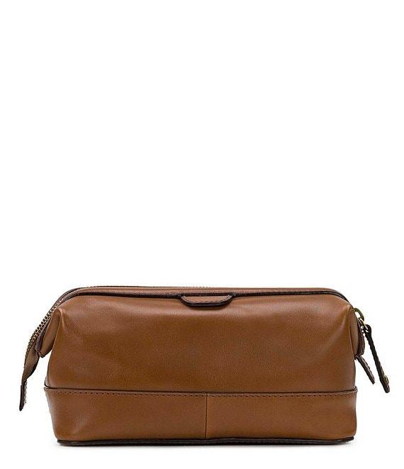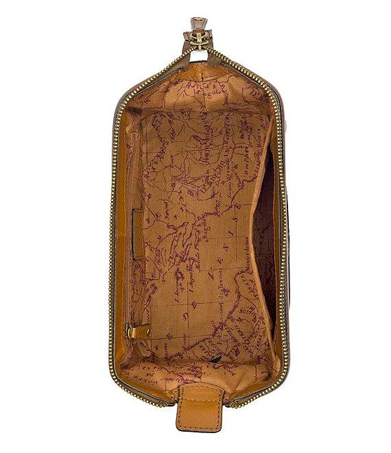 From Patricia Nash, this travel case features: Interior: 1 zip pocket, 1 slip pocket Signature Map print faille lining Exterior: burned edge finish Zipper closure Signature brushed metal hardware, heavy handcrafted stitching Dimensions: 9(W) x 4(H) x 5(D) Leather Imported.