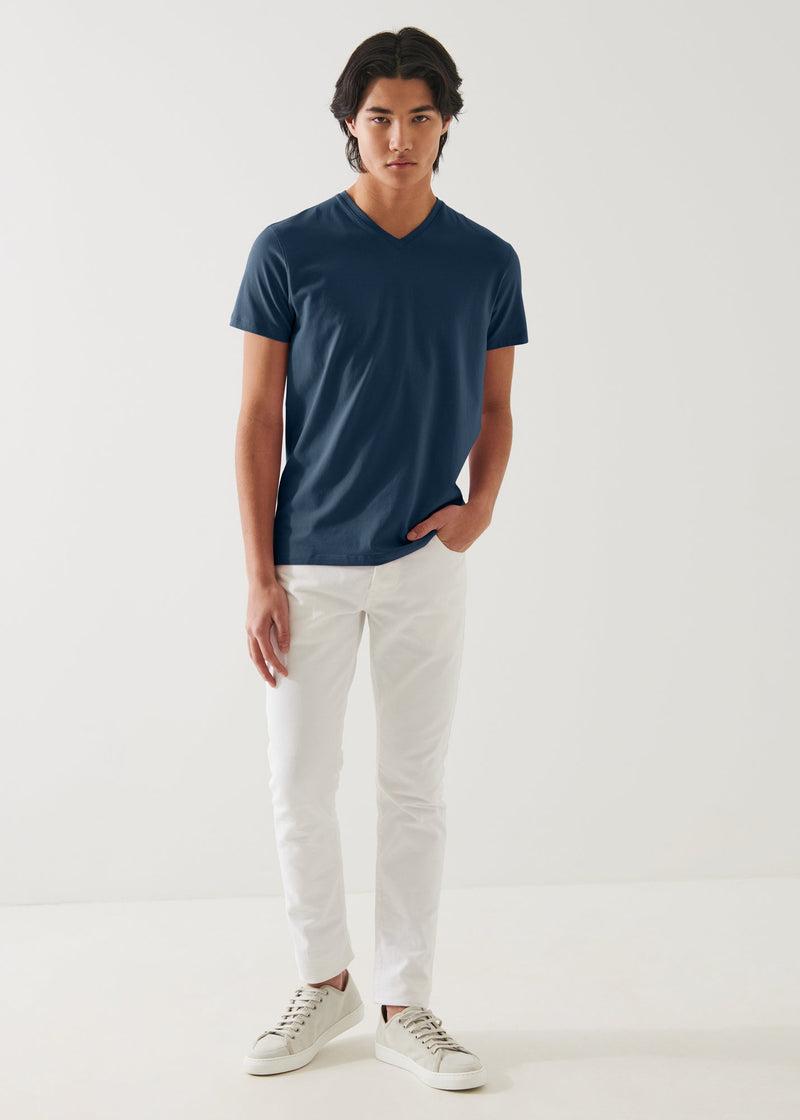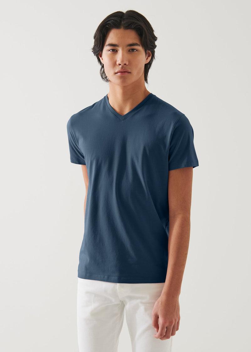 Description Introducing the Patrick Assaraf Iconic V-Neck T-Shirt, expertly crafted from fine Peruvian Pima cotton with added stretch for unparalleled comfort. The pre-shrunk fabric ensures long-lasting performance and a luxurious silky hand feel. Perfect for layering, this versatile piece is a must-have in any wardrobe. Size & Fit FITS TRUE TO SIZE DESIGNED FOR A SLIM FIT REGULAR WEIGHT STRETCH FABRIC MODEL IS WEARING SIZE M Details 95% PIMA COTTON 5% SPANDEX V-NECK MADE IN PERU MACHINE WASH - TUMBLE DRY STYLE- 99A08VN