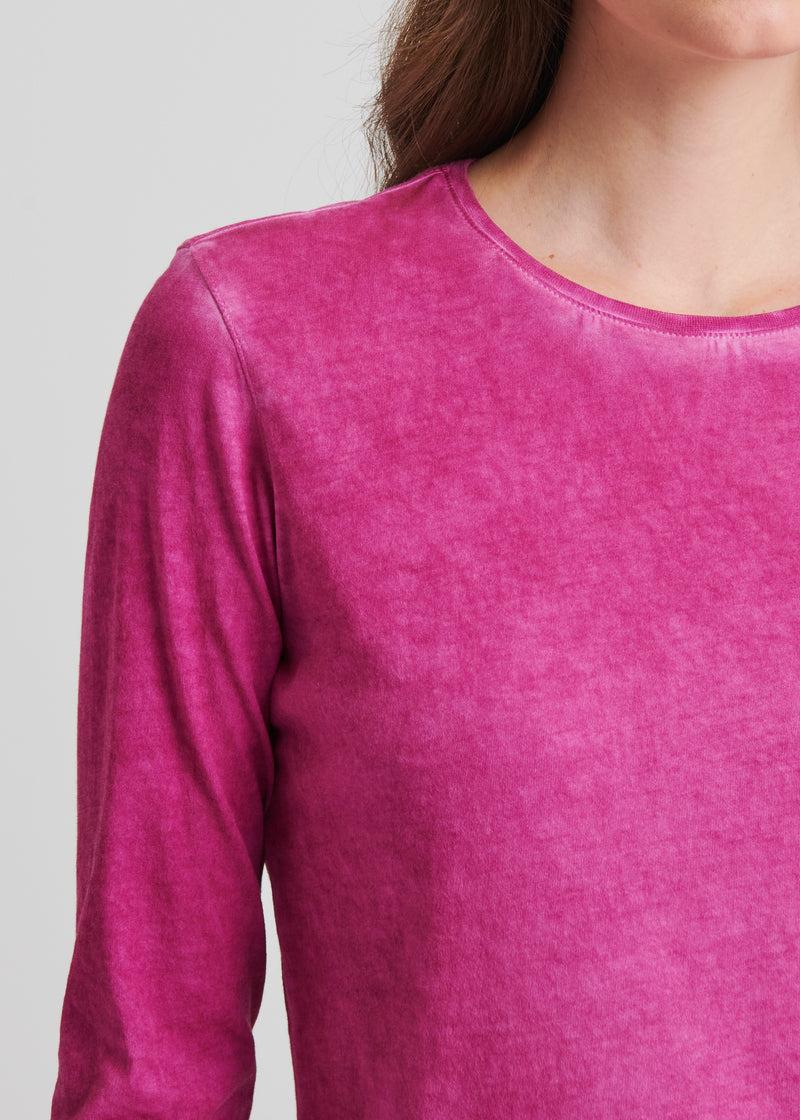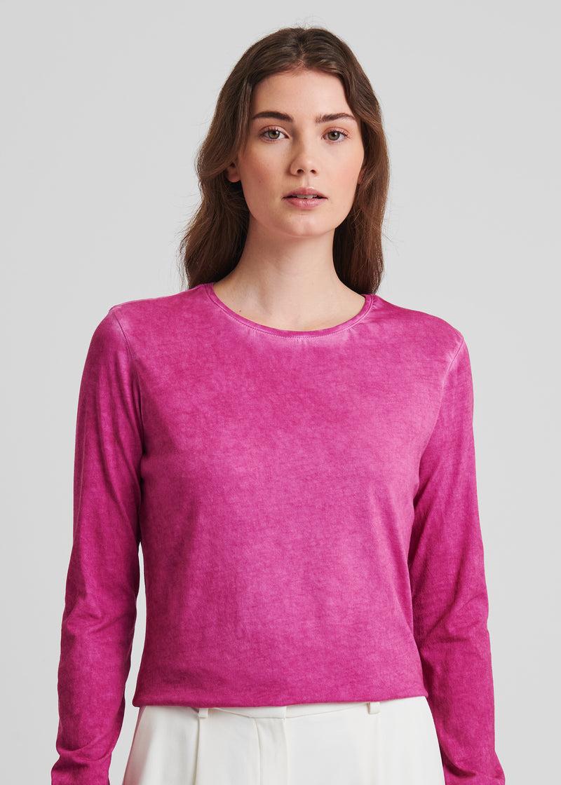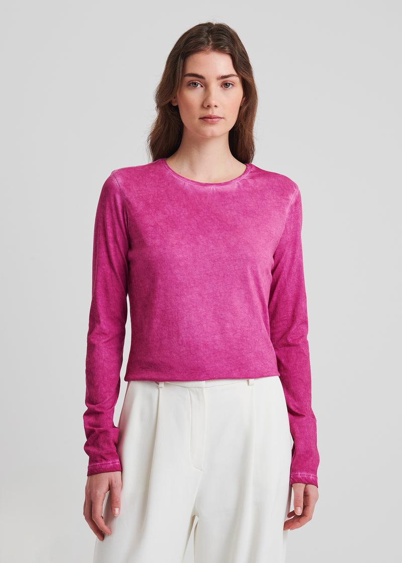Introducing our Patrick Assaraf Pima Sublime Classic Crew - Mulberry. Made from luxurious Peruvian pima cotton, this washed long sleeve crewneck t-shirt boasts a refined vintage aesthetic. Soft, comfortable, and versatile - perfect for layering. Upgrade your wardrobe with this unique dyeing process.