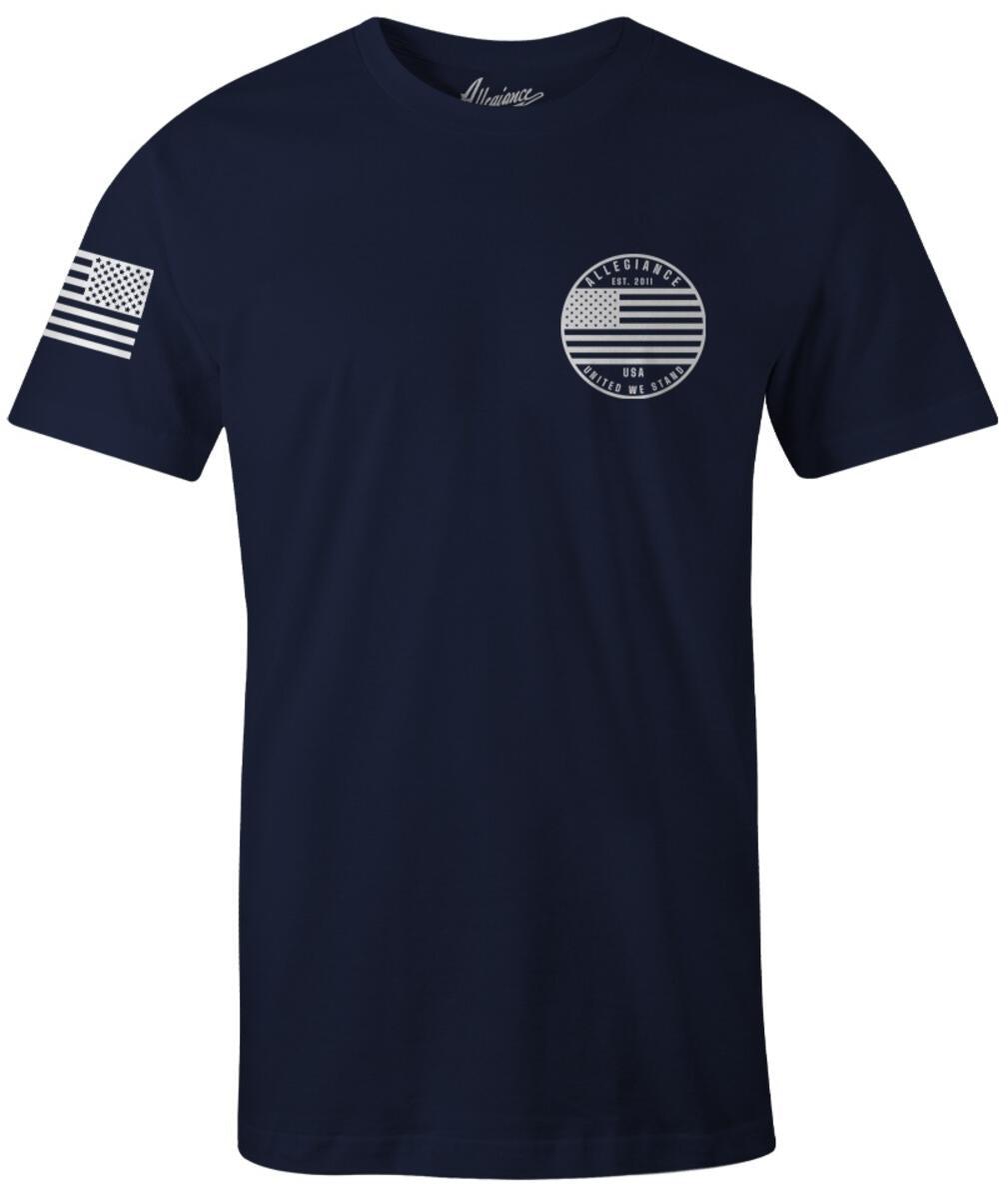 Looking for a shirt that shows your American pride? Look no further than the Allegiance Freedom Premium Tee! This tee features the Freedom logo screen printed small on the front, big on the back, and an assaulting American Flag printed on the sleeve. It’s 60% combed ring-spun cotton 40% polyester and machine washable. Show your support for America with this stylish and comfortable tee. Available in black. Add this tee to your wardrobe and show everyone where your allegiance lies! Made in the USA! The Allegiance Premium Men's Tee Collection. This Collection features our top of the line Men's Tee Shirts. These shirts are all constructed from 60% premium combed ring-spun cotton and 40% premium polyester, which leaves the shirts with an incredibly soft feel. 60% Premium Combed Ring-Spun Cotton | 40% Premium Polyester