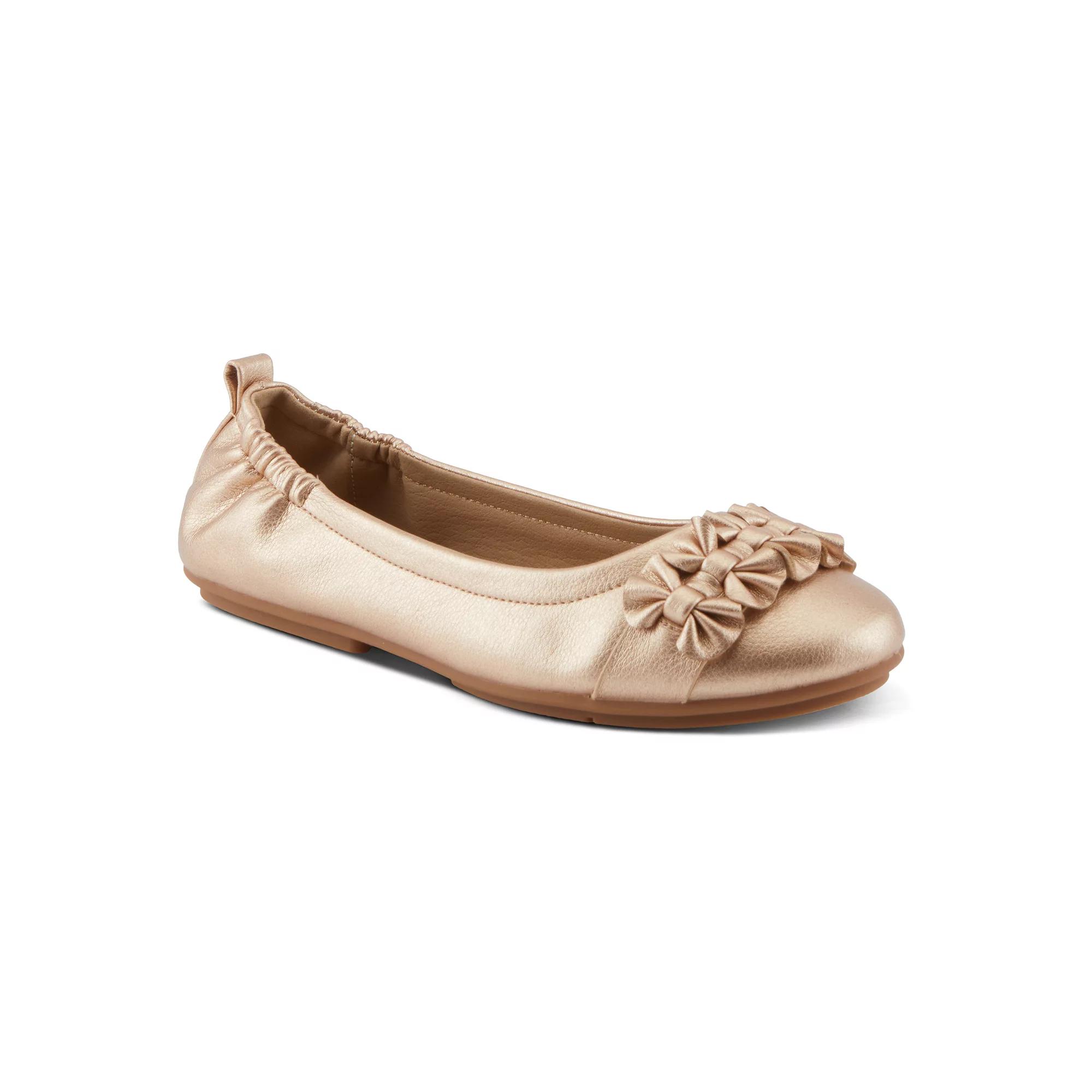 Step into style with these Patrizia Ballay Womens Ballet Flats. Click this FOOTWEAR GUIDE to find the perfect fit and more! Step into style with these Patrizia Ballay Womens Ballet Flats. Click this FOOTWEAR GUIDE to find the perfect fit and more! FEATURES Bow details upper Scrunch back Slip-on for easy on and offDETAILS Faux leather upper and lining Rubber outsole Round toe Slip-on 0.5-in. heel Spot clean Imported Size: 41. Color: Bronze. Gender: female. Age Group: adult.