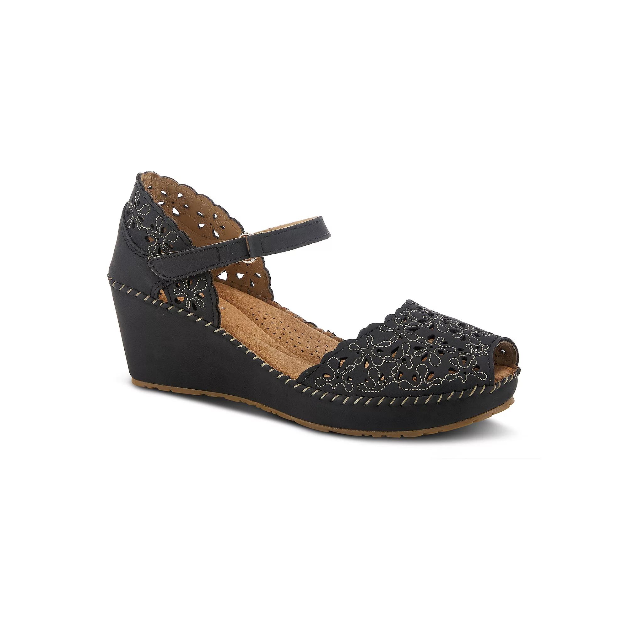 Receive compliments with the intricate and delightful Patrizia Gennina wedge sandal. In a Mary-Jane inspired profile, this ankle strap sandal boasts laser cut detailing and beautiful embroidery works for a fascinating look.