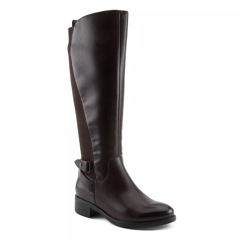 Discover the perfect blend of elegance and comfort with Patrizia's chic tall boots. These versatile boots feature a sleek faux leather design, a stylish buckle accent, and a flexible fit, making them ideal for pairing with everything from casual denim to refined dresses for a polished look that lasts all day. Click this FOOTWEAR GUIDE to find the perfect fit and more! - https://www.kohls.com/feature/shoesizeguide.jsp. FEATURES: Faux leather upper delivers a sleek and sophisticated appearance, Stretch knit back panel provides a flexible, contoured fit for added comfort, Decorative buckle accent adds a refined, equestrian-inspired detail, Low stacked heel ensures stability and effortless all-day wear. DETAILS: Almond toe, Zipper closure, 1.5" heel height, Treaded outsole, Imported. FIT & SIZE: Shaft height: 15 inches, Shaft circumference: 14 inches. MATERIAL & CARE: Faux leather and knit upper, Faux fur and textile lining, TPR outsole, Spot clean. WARNING: Cancer and Reproductive Harm - www.P65Warnings.ca.gov - https://www.p65warnings.ca.gov/. Size: 40. Color: Dark Brown. Gender: female. Age Group: adult.