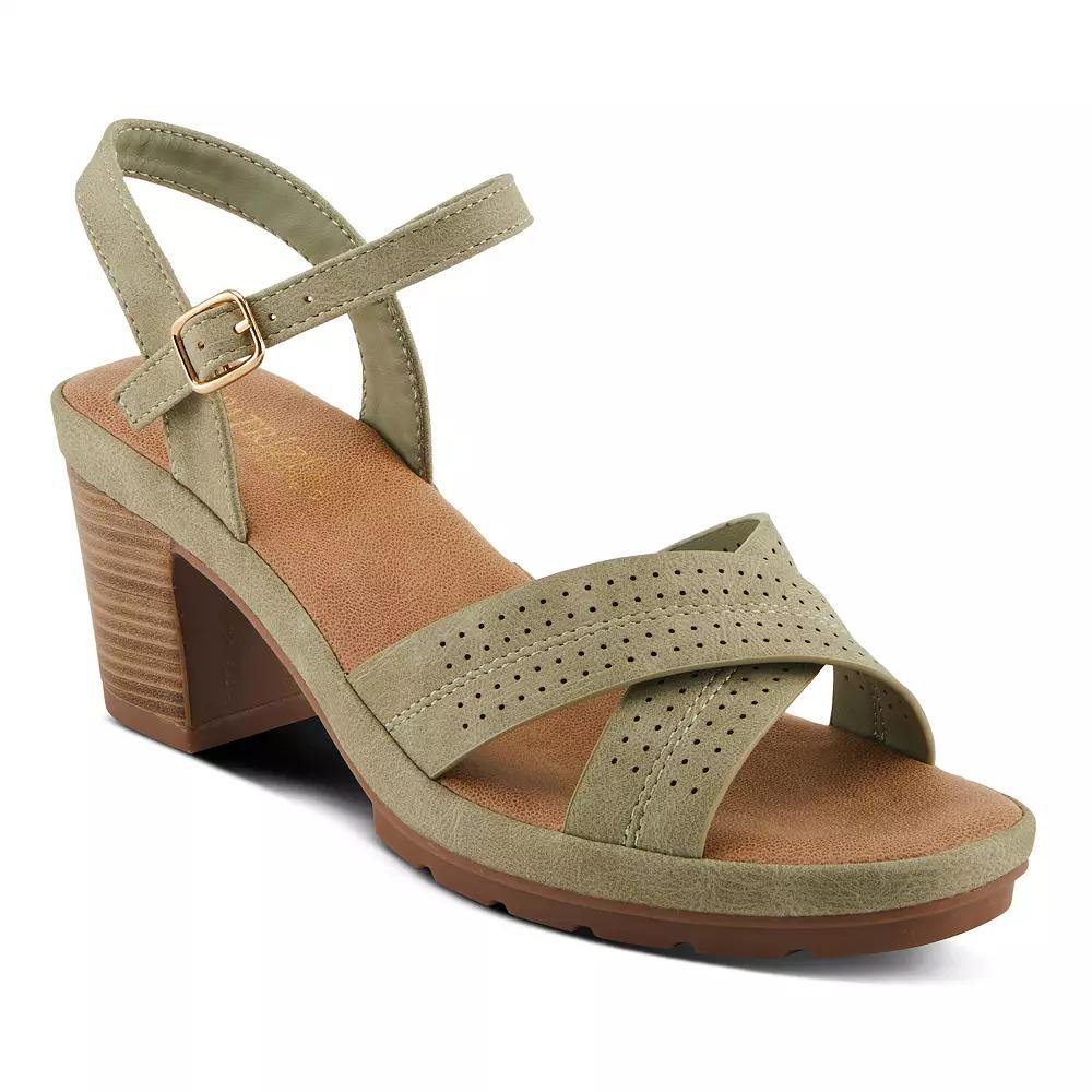 Update your wardrobe with these Patrizia Ravenno Womens Strappy Sandals. Click this FOOTWEAR GUIDE to find the perfect fit and more! Update your wardrobe with these Patrizia Ravenno Womens Strappy Sandals. Click this FOOTWEAR GUIDE to find the perfect fit and more! FEATURES Criss-cross broad straps adorned with intricate pin-dot perforations Block heel Ankle buckle closure for a secure fitDETAILS Faux leather upper and lining Polyurethane, rubber outsole Open toe Buckle closure 2.75-in. heel Spot clean Imported Size: 37. Color: Med Green. Gender: female. Age Group: adult. Material: Synthetic.